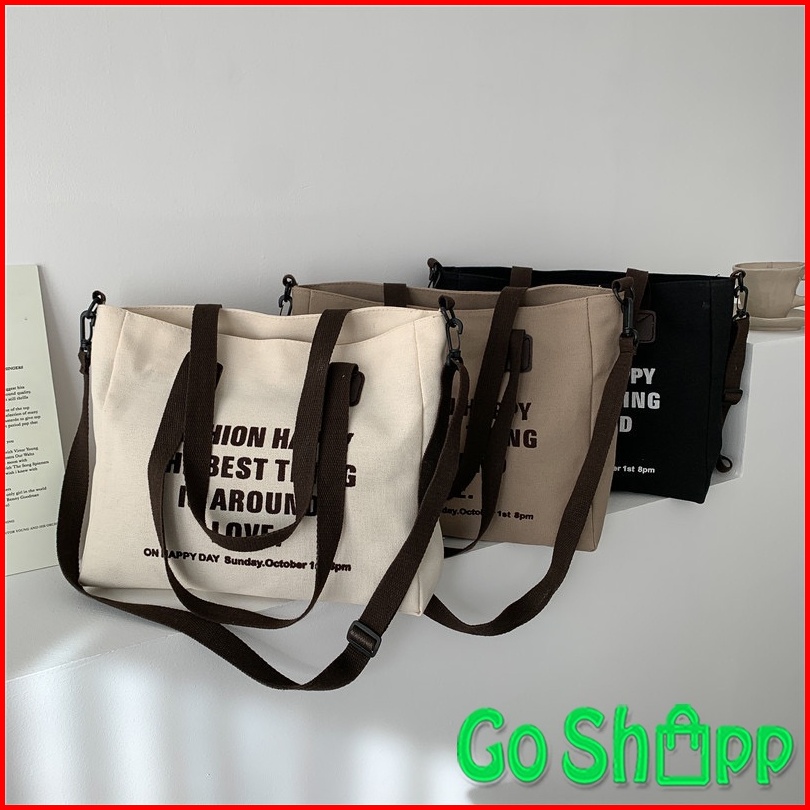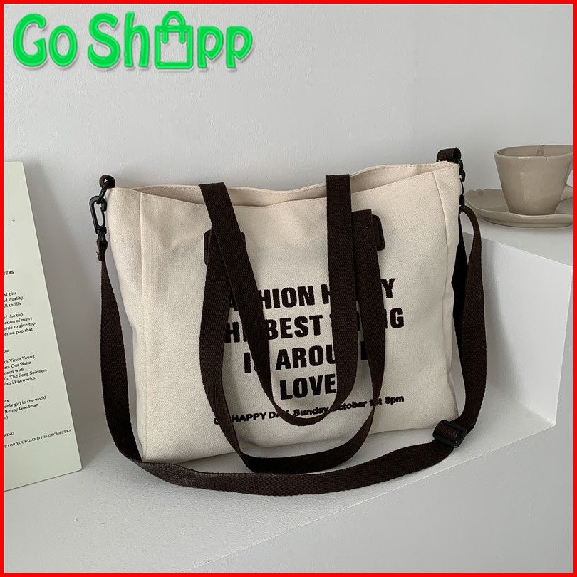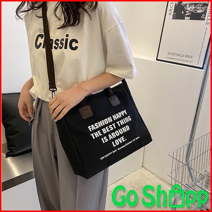 Tas Tote Bag Wanita Kanvas Resleting Import Fashion Korea Terbaru Kekinian - Totebag Selempang Aesthetic Kuliah Kantoran