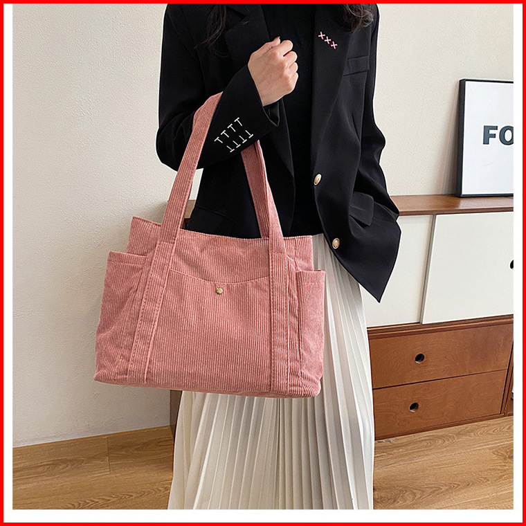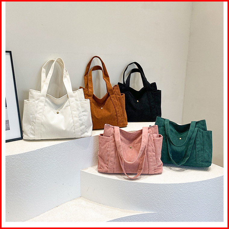 Hayden Soleil Bag Tote Bag Korduroi Polos Fashionable Wanita Korea Tas Jinjing Muat Laptop Elegan - Hyb3j