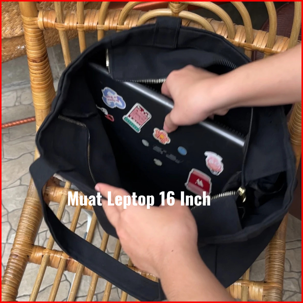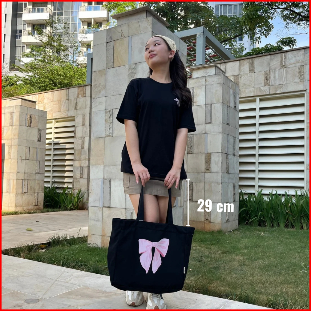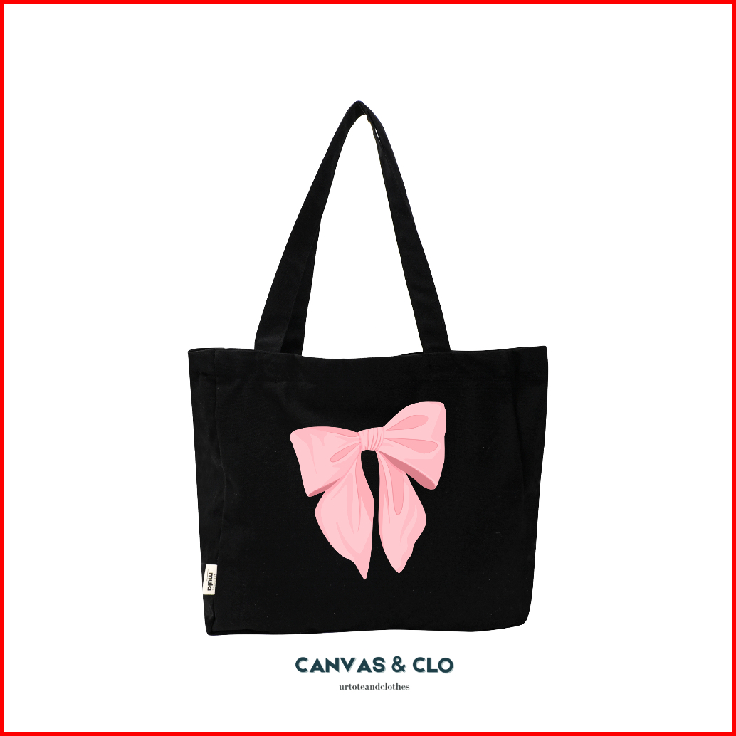 Coquette Series Big Capacity Black - Tote Bag Leptop Kanvas Kapasitas Besar - Tas Serbaguna Wanita Tas Kuliah Tas Model