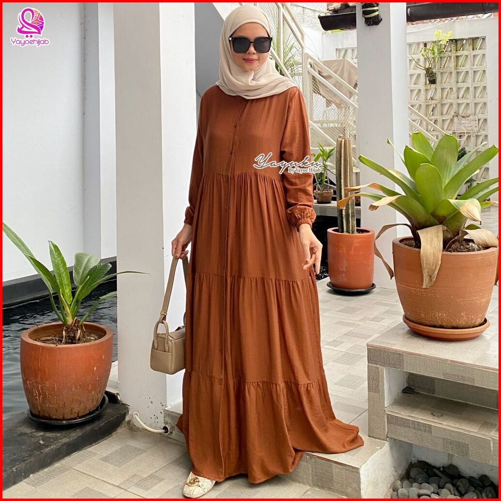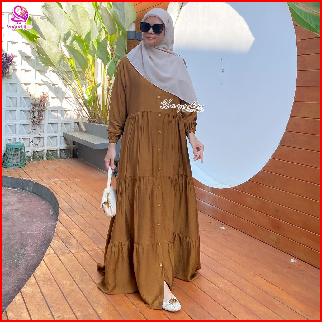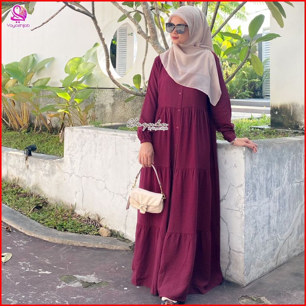 Ayesha Dress Lengan Panjang Polos Polo Linen Model Susun Terapan Full Kancing