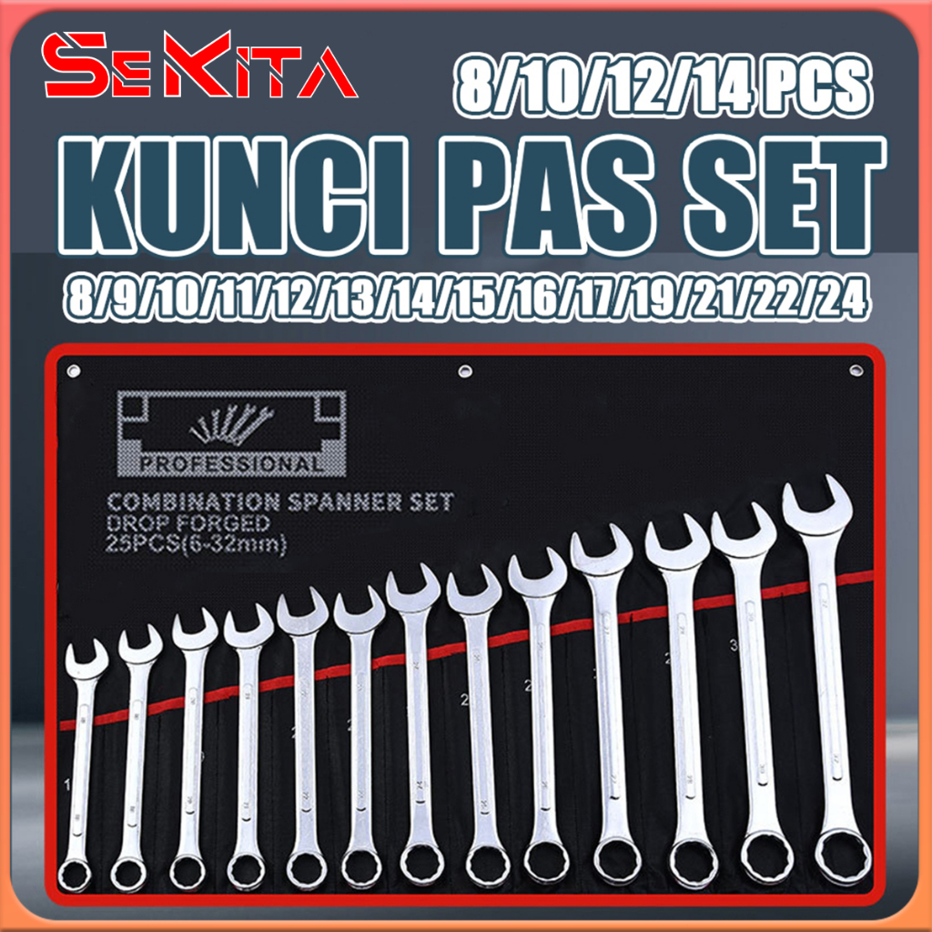 Kunci Ring Pas set/ 8 /10/12 /14 Pcs 8-24mm Kunci Pas/riginal 100 PERSEN/Kunci Pas Serbaguna Set/Lengkap Perkakas Reparasi Mobil Rumah Tangga