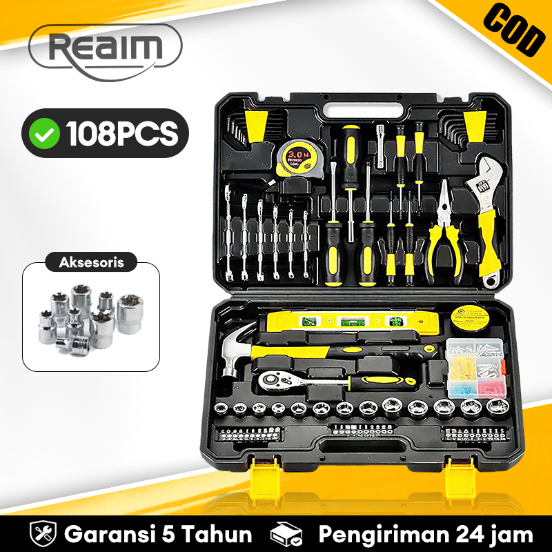 REAIM Set Kunci Shock 108pcs Toolbox Set Multifungsi Tool Kit Set Alat Box Peralatan Pertukangan Hand Tools Lengkap