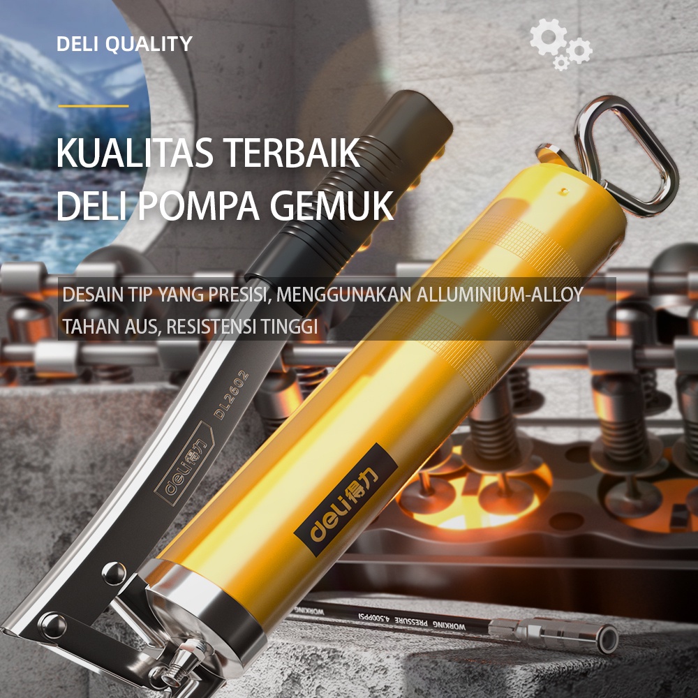Deli Grease Gun/Pompa Gemuk 400CC 4500/6000 psi Untuk Oli DL260X /Alat Perkakas