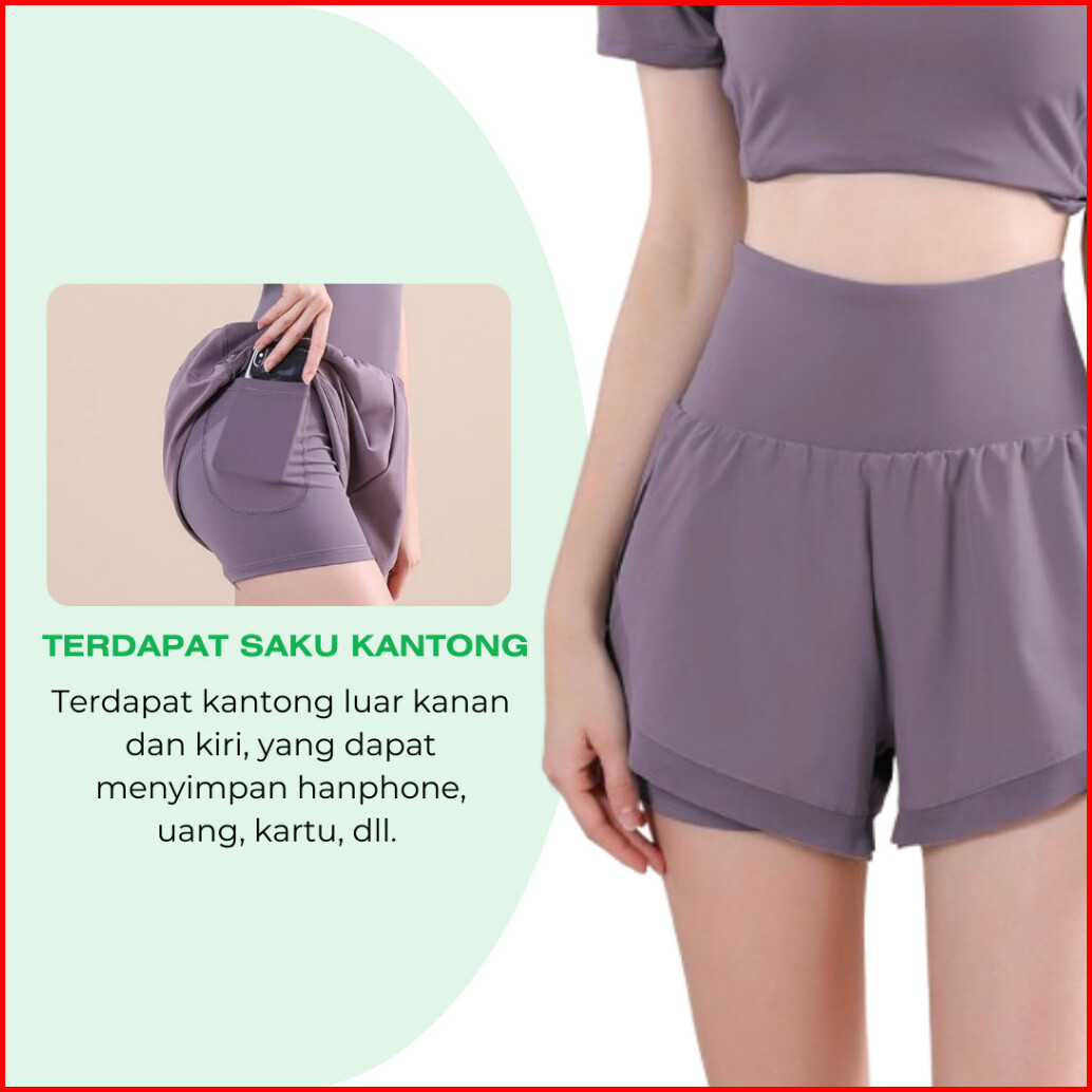 Kktop Celana Pendek Olahraga Wanita High Waist Dry Fit Gym Yoga Running Sport Cocok Untuk Badminton Padel Cp002