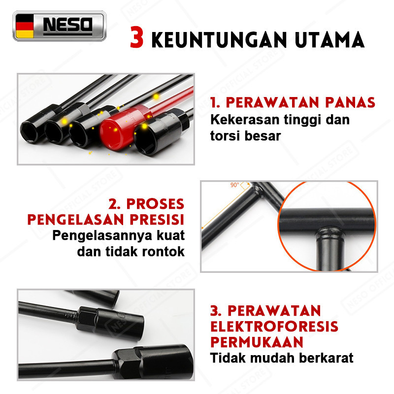 NESO JERMAN Kunci T-Type Wrench 8-14 mm Kunci pas soket perbaikan T Kunci Sok Sock Socket T Set Konci Original - ALAT