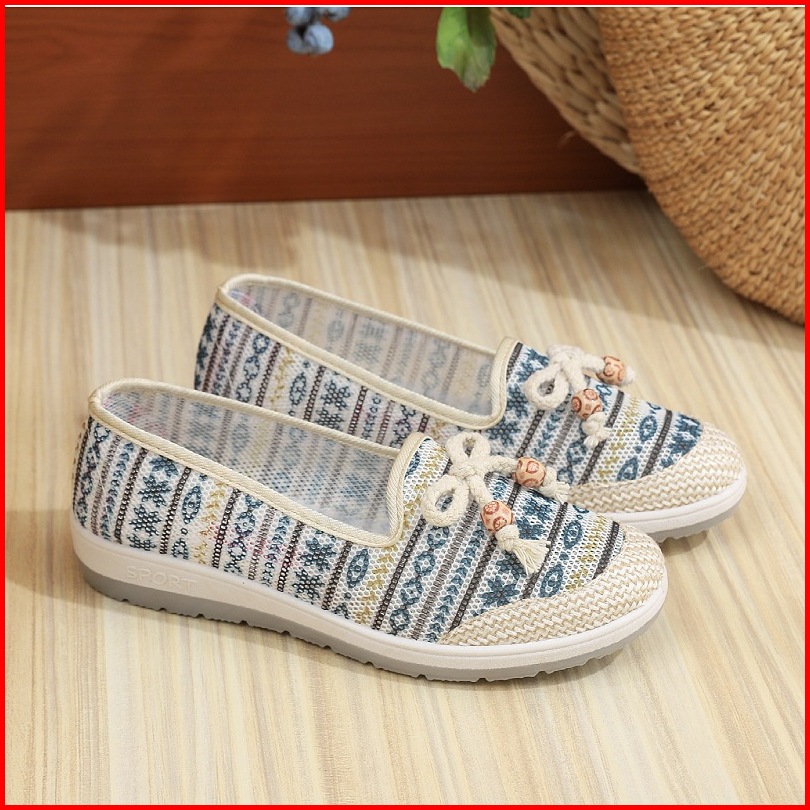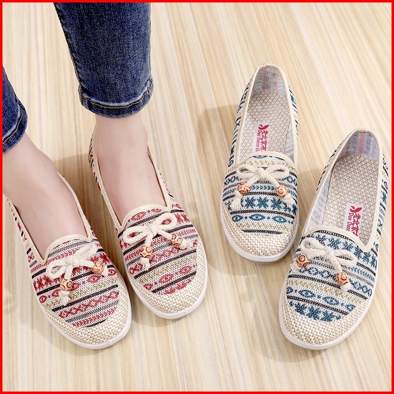 Nw051 Sepatu Slip On Wanita Motif Batik