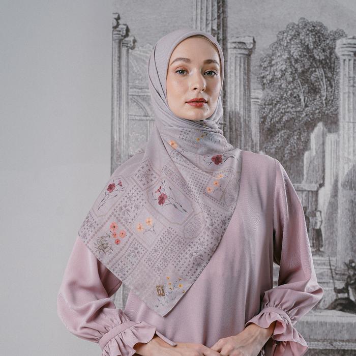 Zoya - FIORELLA Scarf - Kerudung Hijab Segiempat Motif With BOX - Bahan Nesla - Ukuran 115x115_Voal - Black