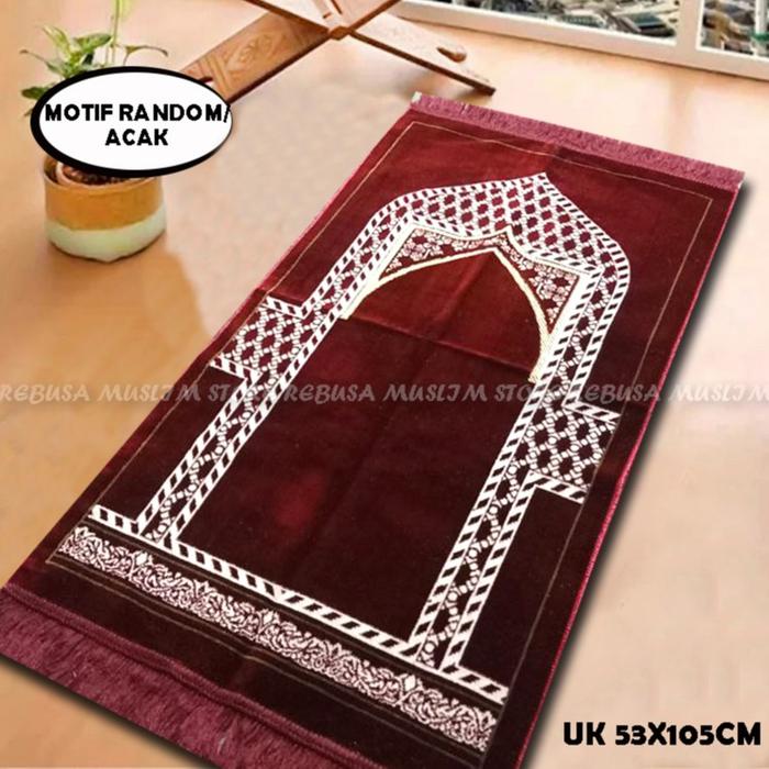 Sajadah Sholat Turki Ukuran Medium 53x105 Design Simple Elegan - Merah