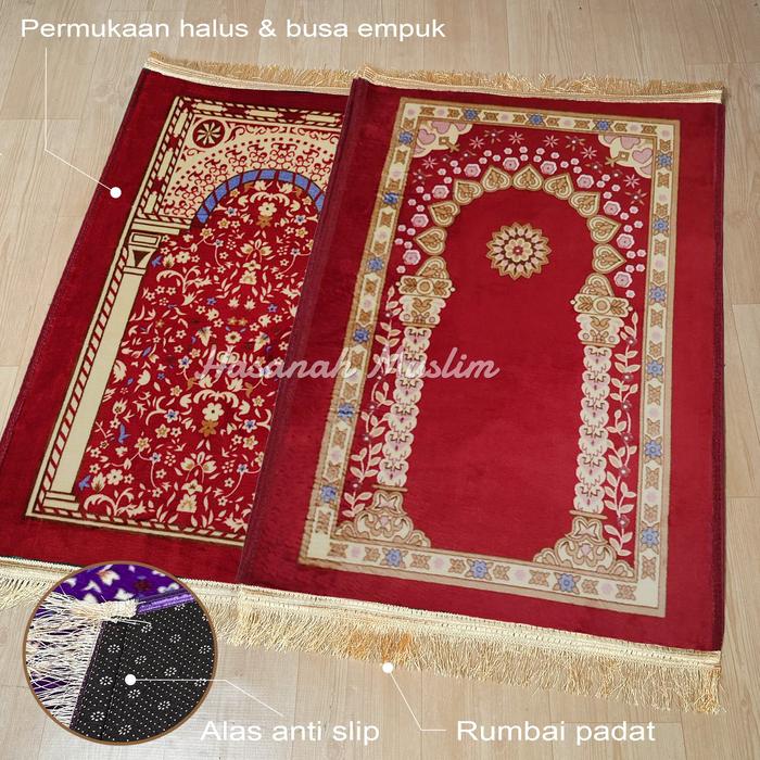 Sajadah Sholat Turki Tebal Busa Empuk Multicolor Premium Bulu Embos Motif Elegan Nyaman Muslim Bordir - Marun