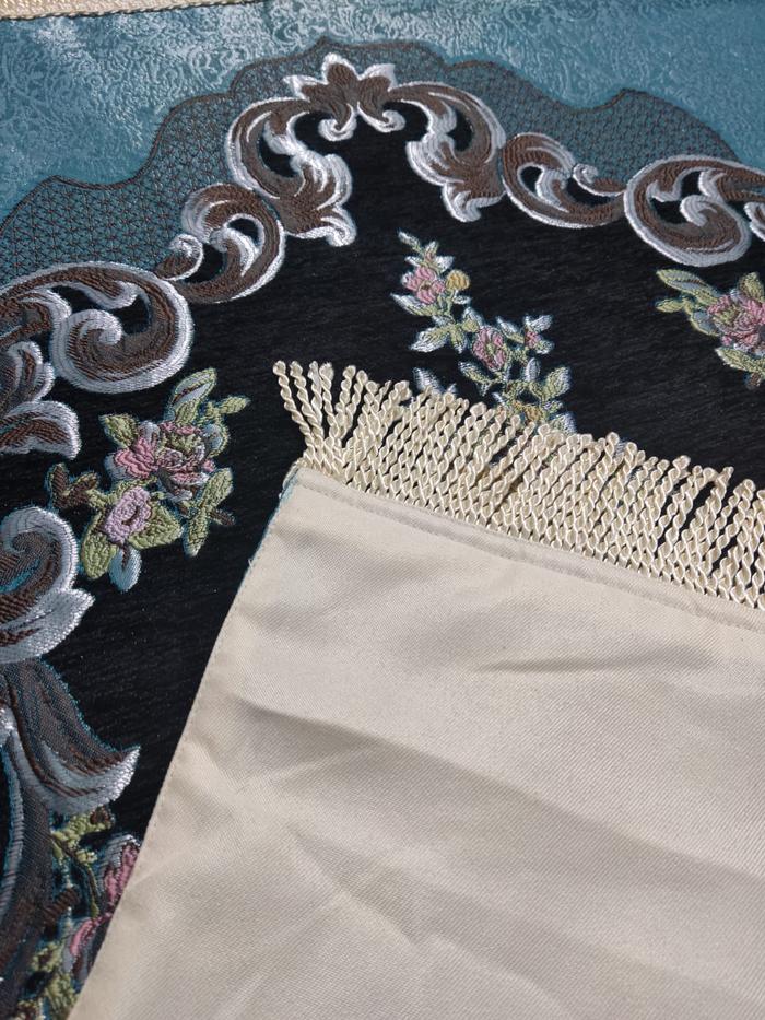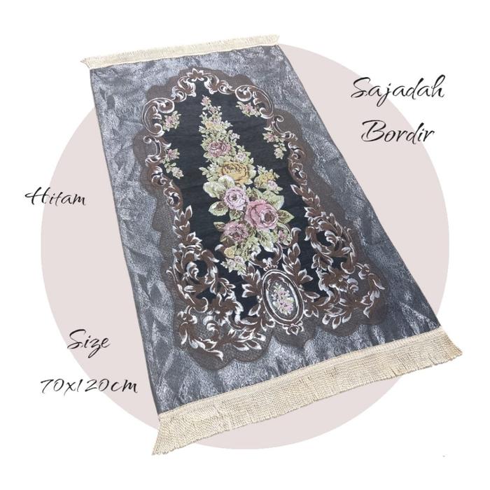 SAJADAH Mahar Sajadah Bordir Motif Bunga Bahan Satin Premium Import Size 70x120cm JZW-007 - Hitam 70x120cm