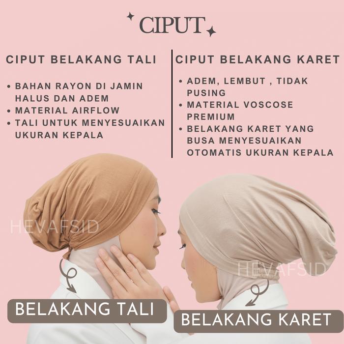 Heva - Paket Bundling Pashmina Kaos+Ciput Tali/Karet Jilbab Muslim - CIPUT BELAKANG TALI