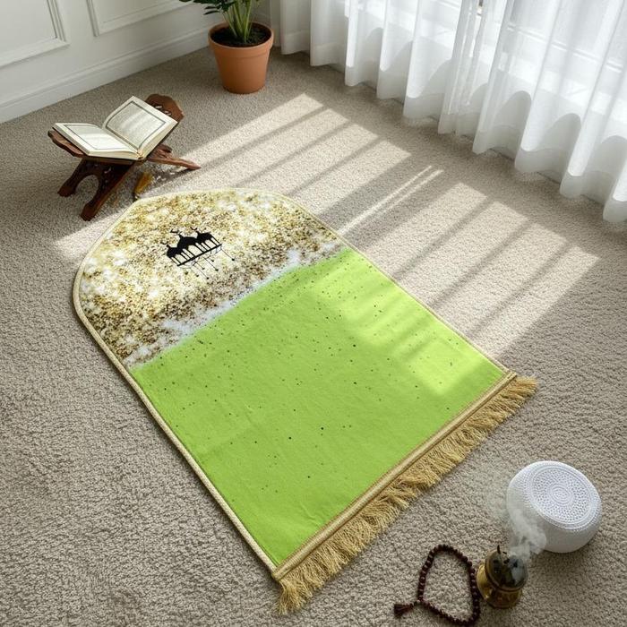 [MOTIF GLITER] Sajadah Kubah Rawis Motif Gliter Premium Murah - 110x70 cm - Bulu - A1 hijau gliter