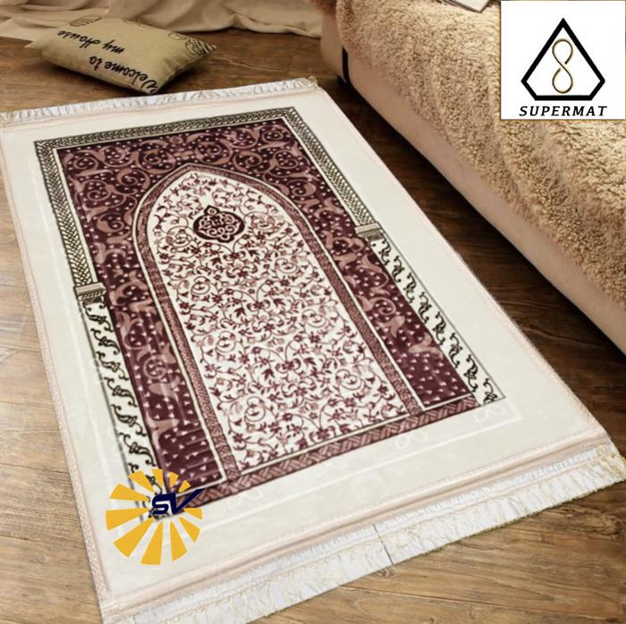 Sajadah Turki Tebal Premium Gold Dewasa Ukuran 70 x 110 Cm - Supermat - Traveling Muslim Nyaman sholat - Gold Biru