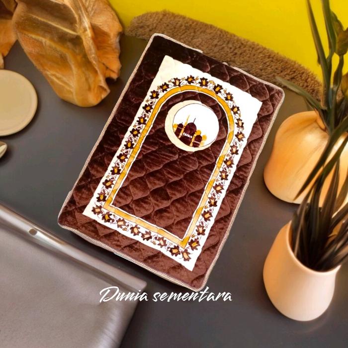 SAJADAH EMPUK NON RUMBAI ANTI SLIP TEBAL Bulu Lembut Motif Nyaman Muslim Turki Embos Hitam Busa - Cokelat 70x110cm