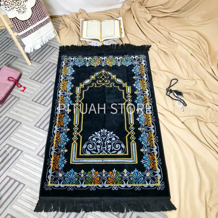 bayar ditempat Sajadah Turki Alif bahan beludru premium ukuran 70 x 110 cm Sejadah Turky Bludru Lembut Murah - Hitam