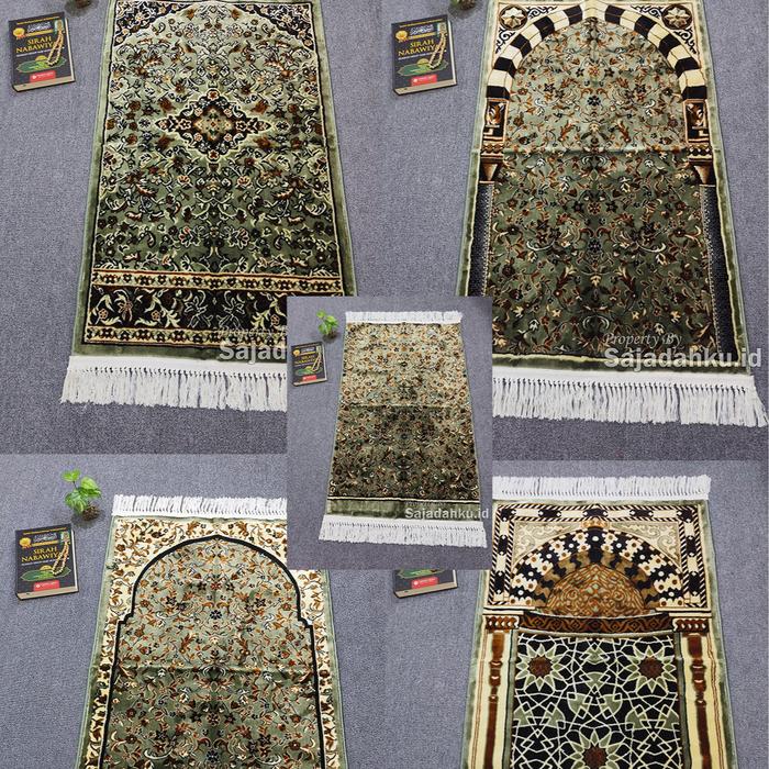 Sajadah turki raudhah tebal ukuran 70 x 110 cm bahan bludru halus - Hijau