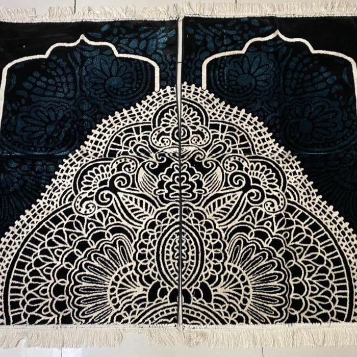 1pcs Sajadah Model Couple Sepasang Turki Saudi Premium Beludru Hitam Besar 70x110cm - MOTIF 1 1PCS(SEBELAH)
