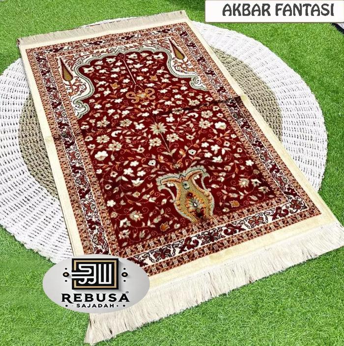 Sajadah Sholat Tebal AKBAR GOLD FANTASI Bulu Lembut Ukuran 70x110 Motif Meyerupai YAKAR FANTASI Turki - Merah