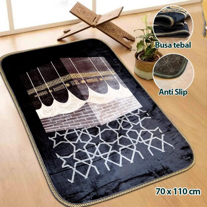 {GRATIS ONGKIR} Sajadah Nur Kiswah Tanpa Rumbai 70x140 / Nyaman Bahan Tebal Bludru Empuk Bulu Busa - A