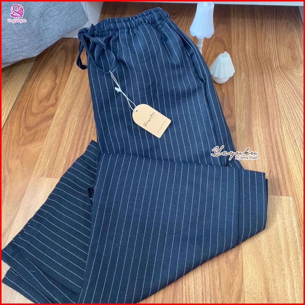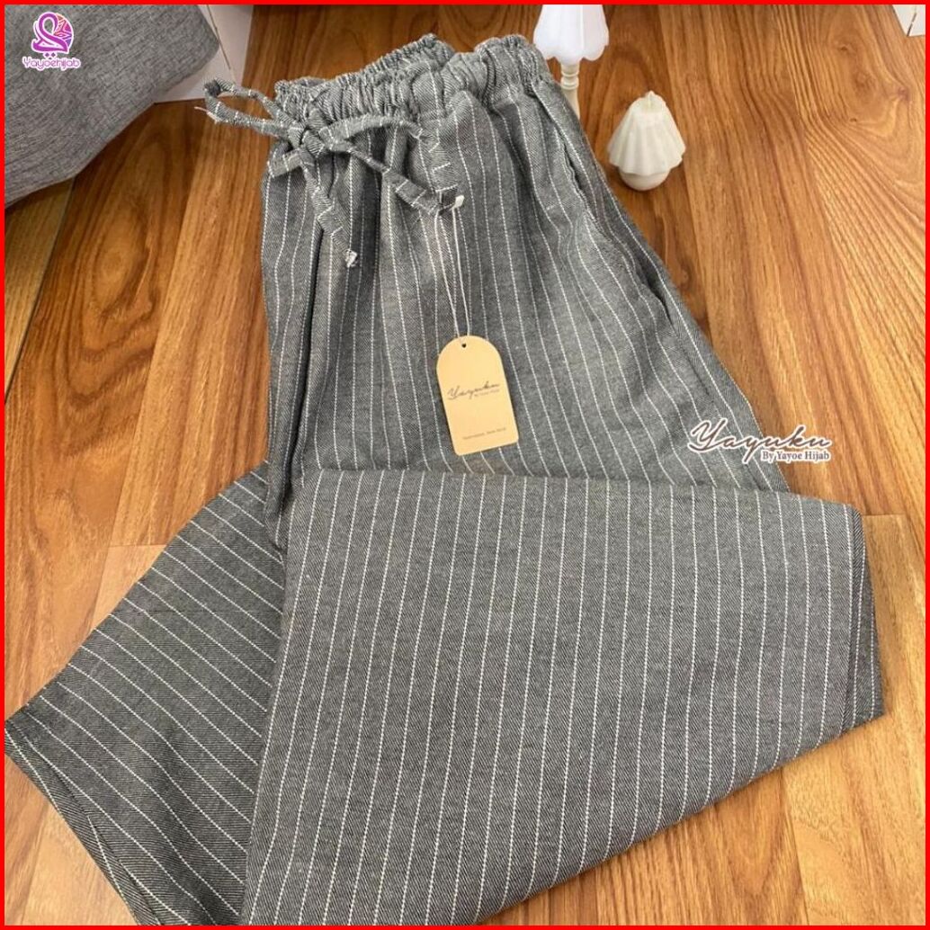 Yuka Celana Kulot Panjang Unisex Motif Garis Modis Cocok Untuk Hangout Rumah Casual Look Simple Elegan Bisa Untuk Ootd Y