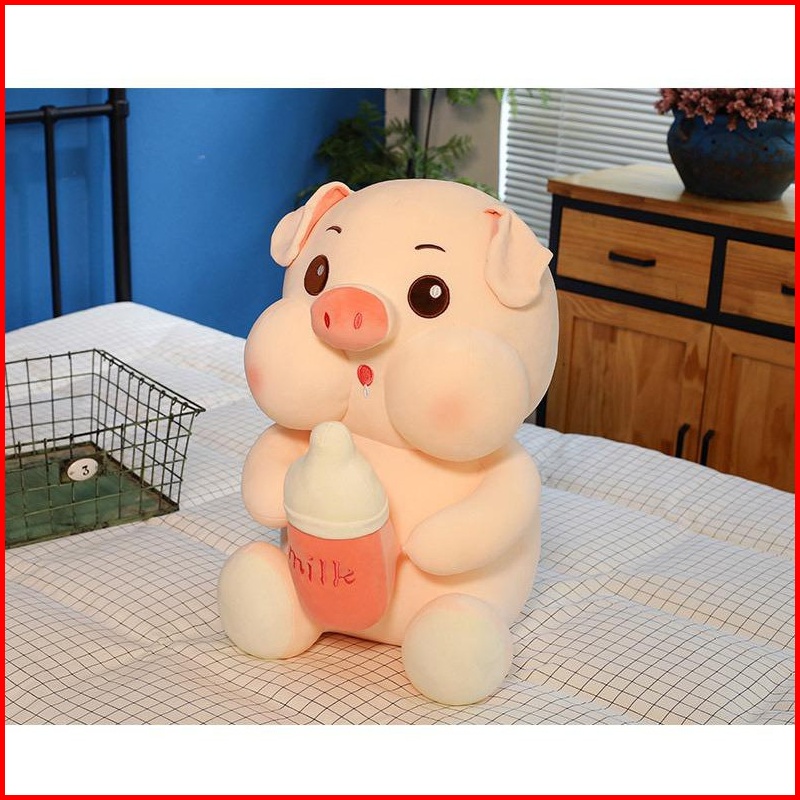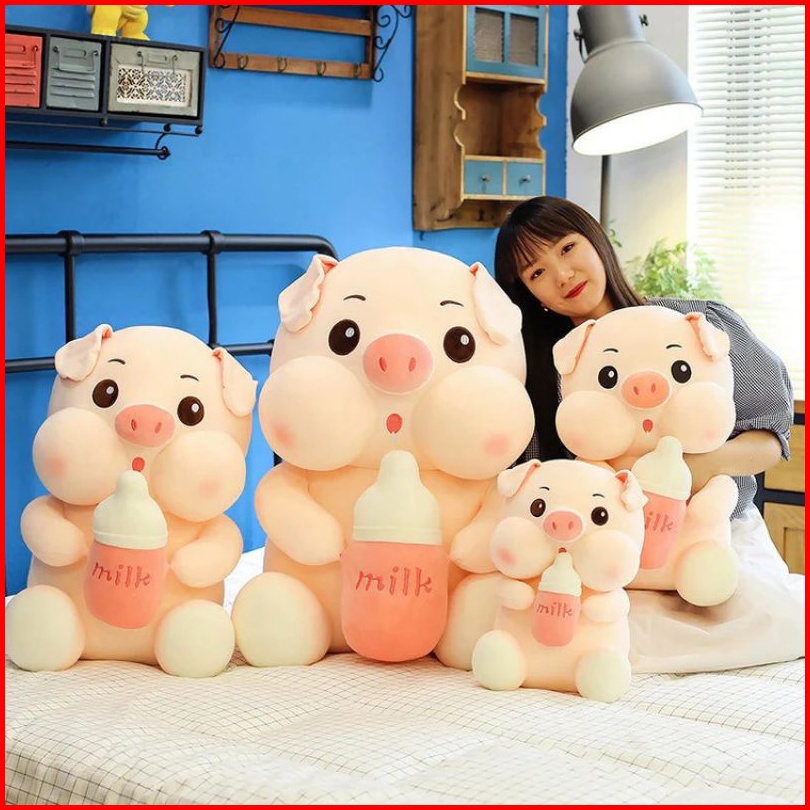 Boneka Babi Jumbo 45 Cm Piggy Milk Bottle Pig Pegang Botol Susu Pink Gemoy Halus Lembut Lucu