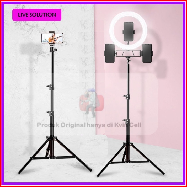 Paket Lampu Ring Light 26cm Dan Tripod 2.1 Meter Free 3 Holder Hp Studio Streaming Striming Jualan Besar