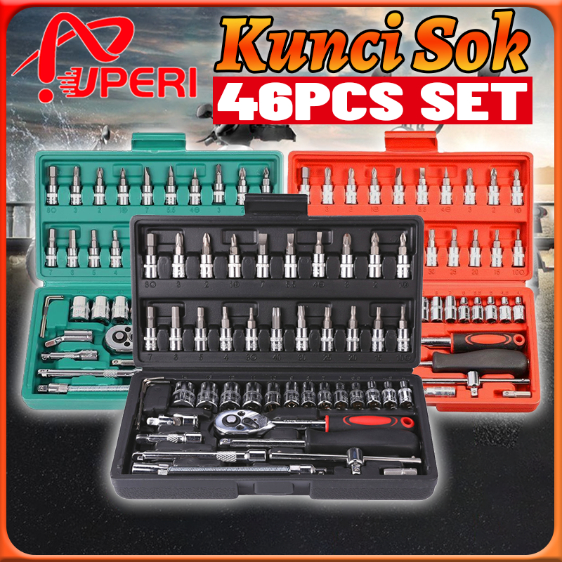 Set Kunci Socket 46 PCS full Set 1/4 "Pas Ring L Motor Kunci/kunci l set CR-V lengkap/kunci ring pas 1 set lengkap