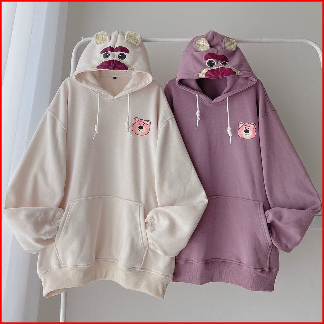 Bear Cute Hoodie Sweater Oversize Wanita Korean Style Sweater Lucu Kekinian