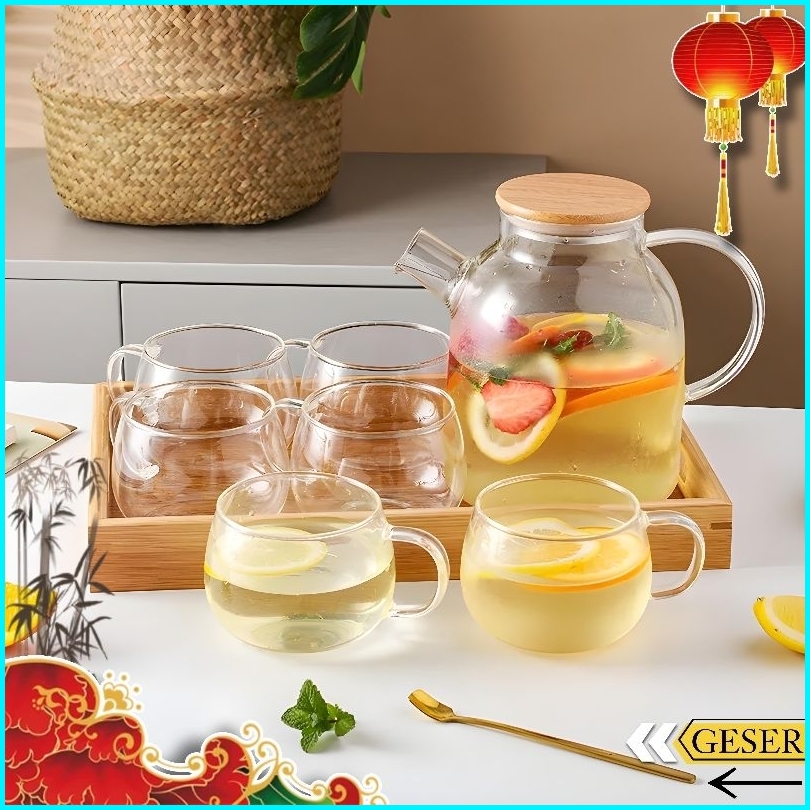 One Two Cups Teko Set Gelas Aesthetic Teko Teh Kaca Tahan Panas Dan Api Tea Set