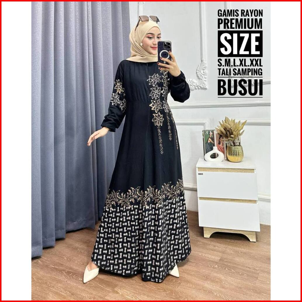 Gamis Twill Rayon Cap Malaman Premium Terbaru Kekinian Busui Jumbo Hayati Ind Kolaborasi Batik Usman
