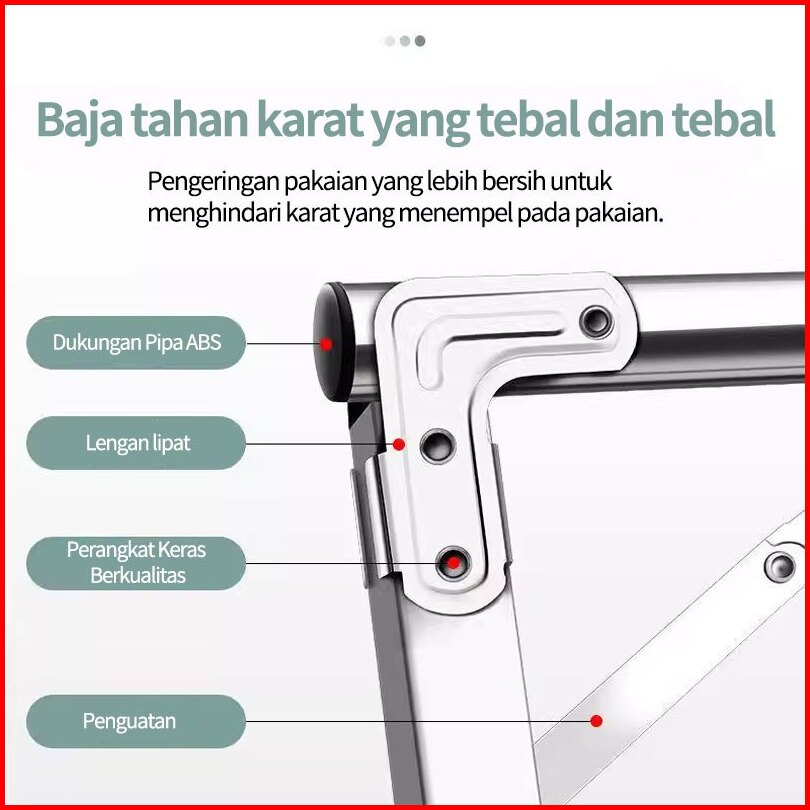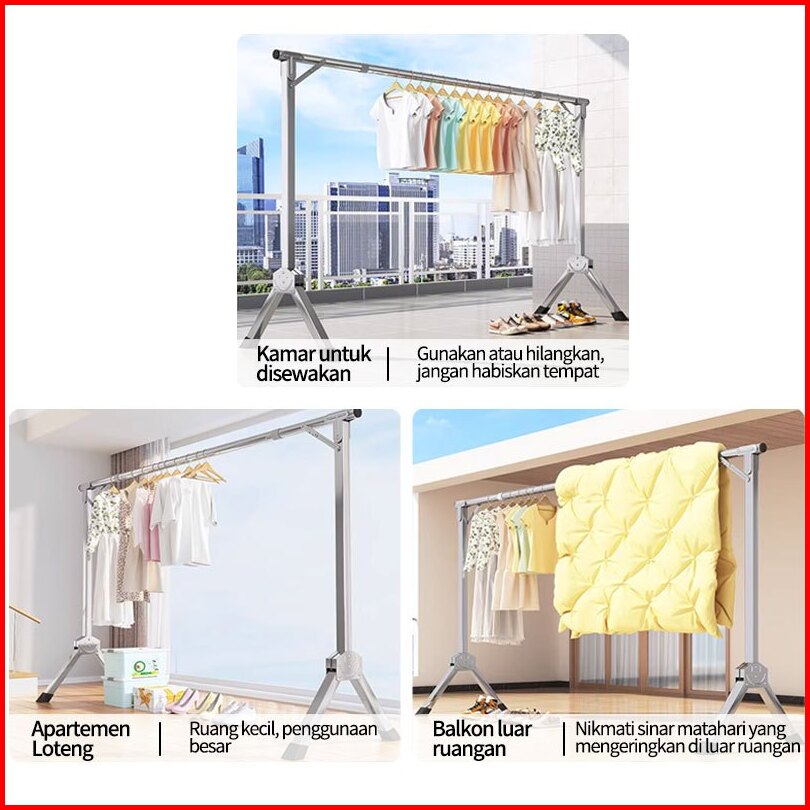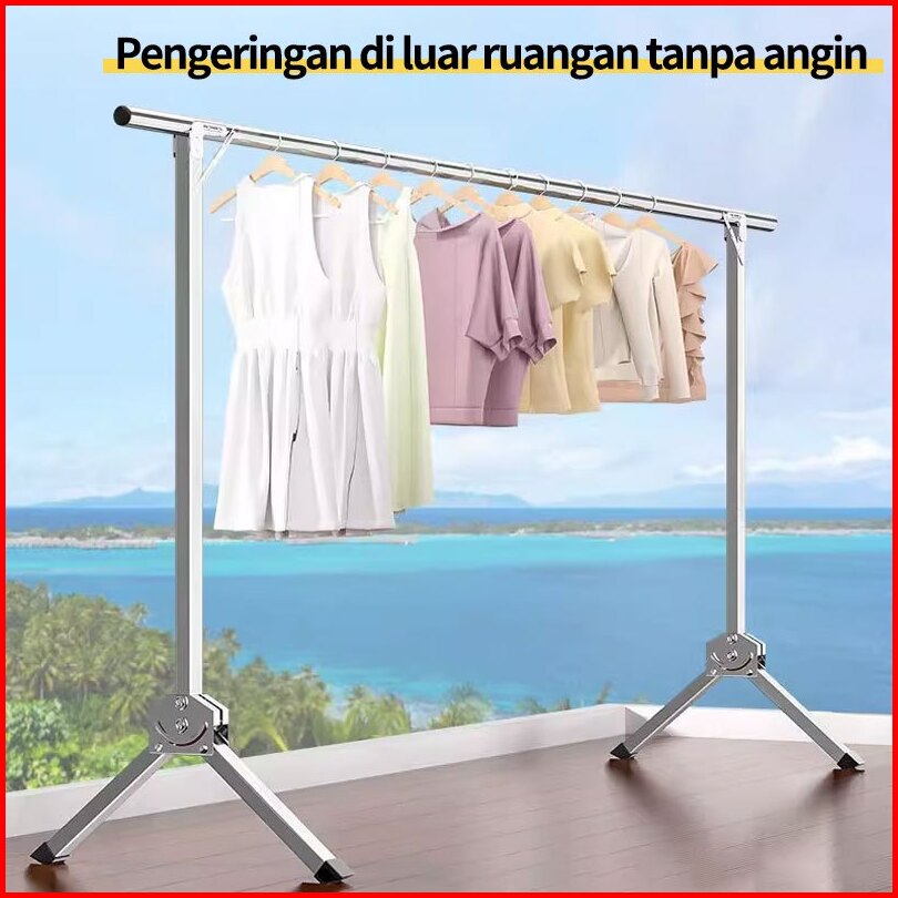 240cm Jemuran Baju Stainless Steel Jemuran Single Pakaian Lipat Single Jemuran Portable Hangertidak Diperlukan Instalas