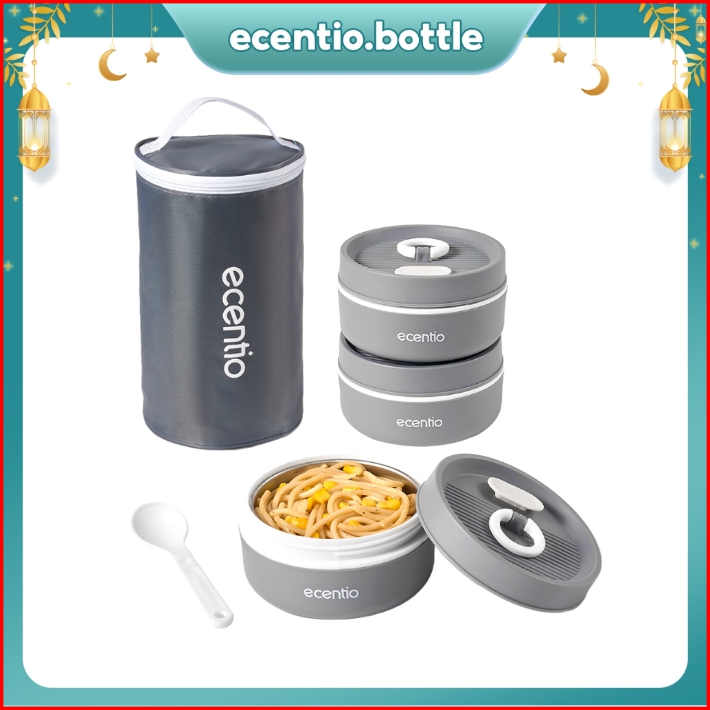 3pcs Setecentio Kotak Makan Siang Bento 300ml Portabel Stainless 304 Tahan Bocor Lunch Box Set Tahan Panas Tempat Makan