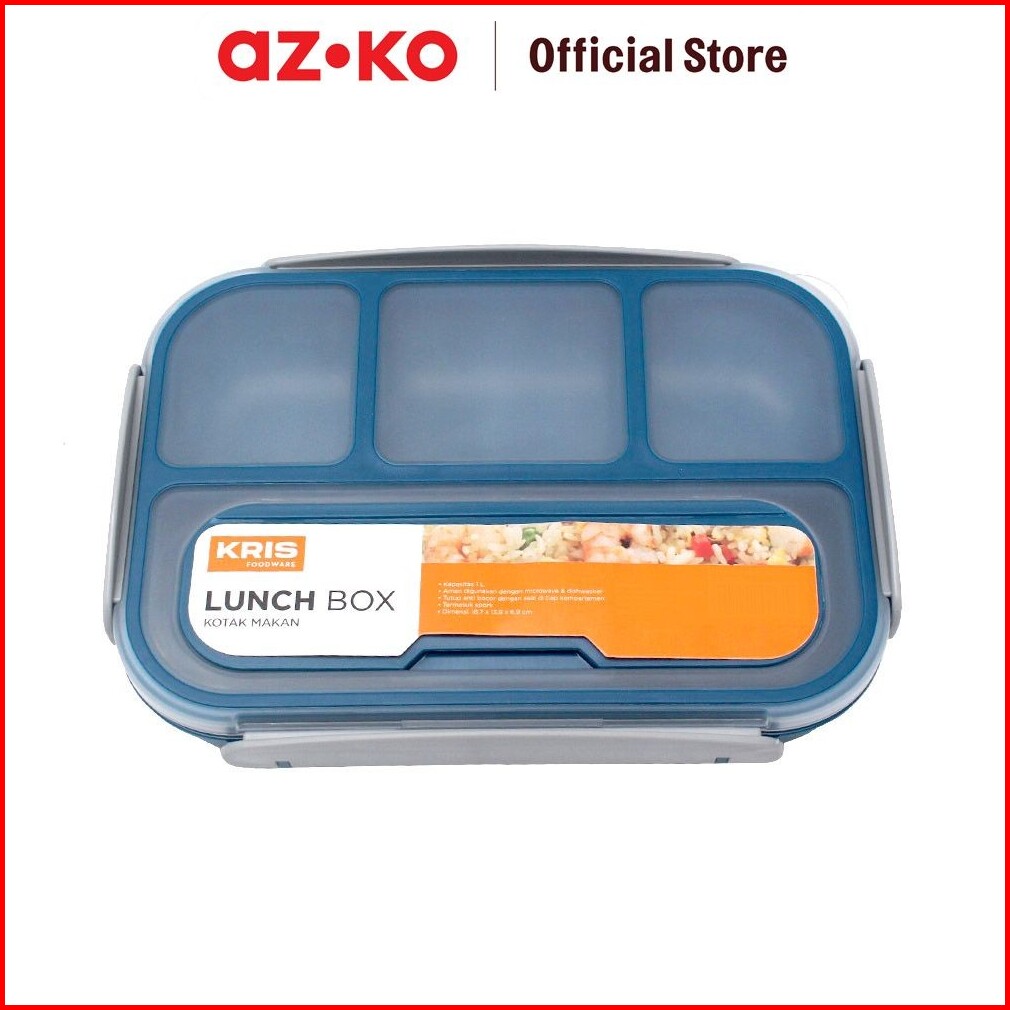 Azko Kris 1 Ltr Kotak Makan 4 Sekat - Biru Organizer Bag Set Perlengkapan Traveling Tas Serbaguna Toiletries Pouch