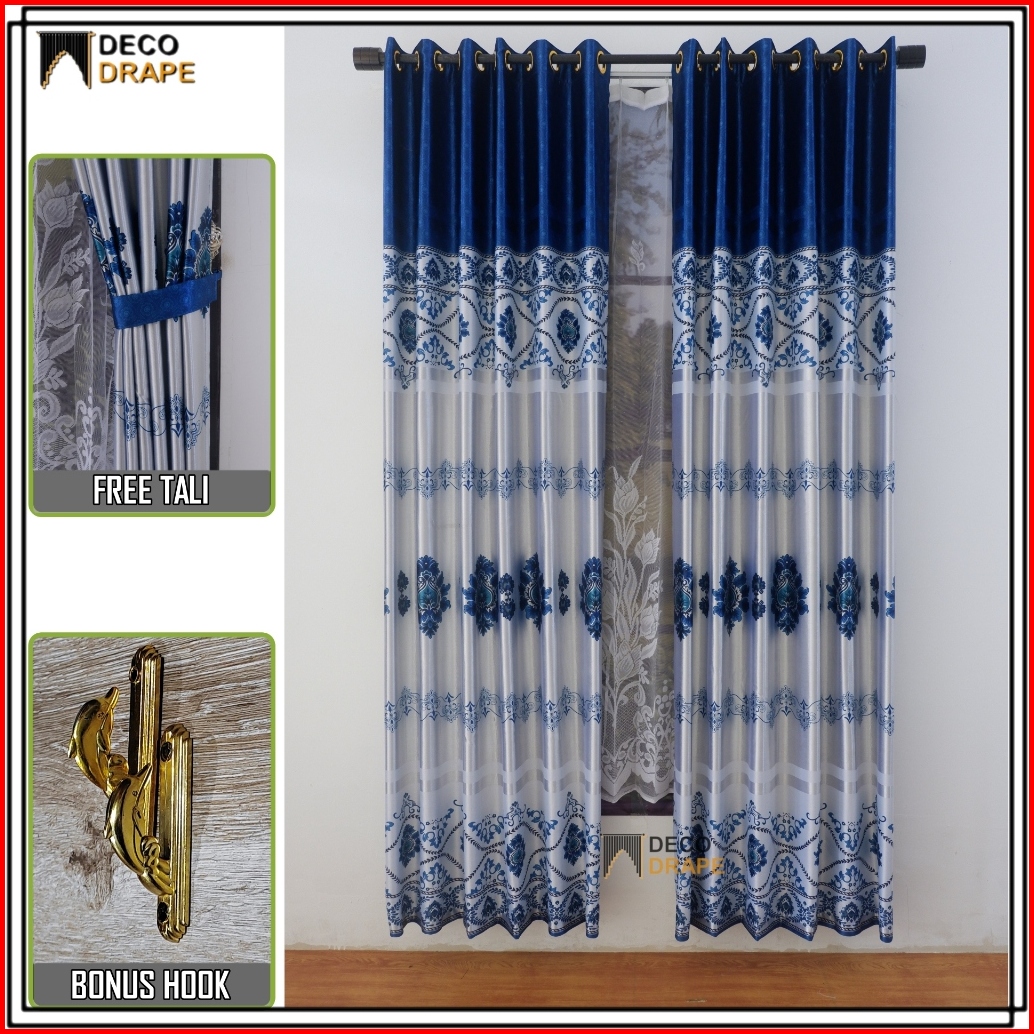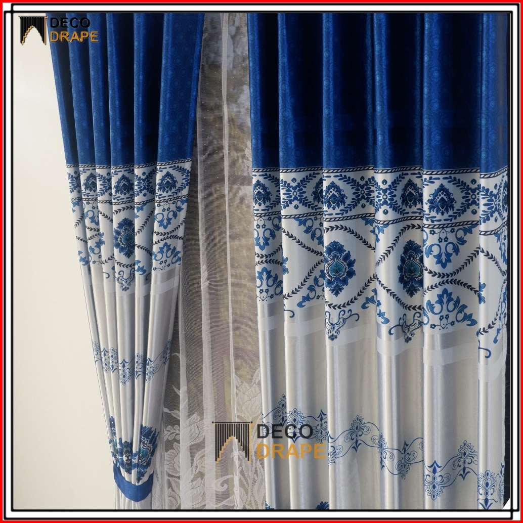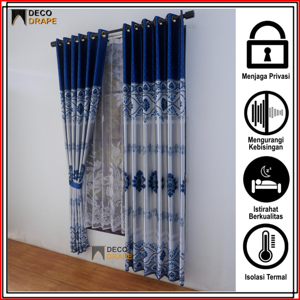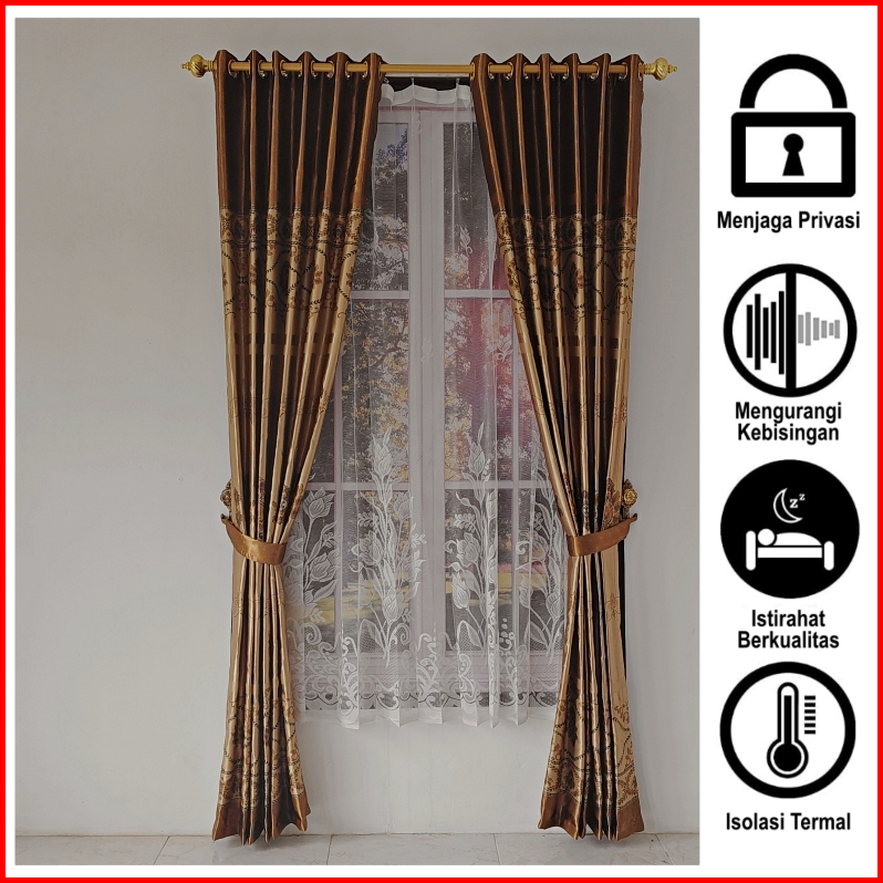Gorden Jendela Panjang Kain Blackout Tebal Glossy Motif Batik Mewah