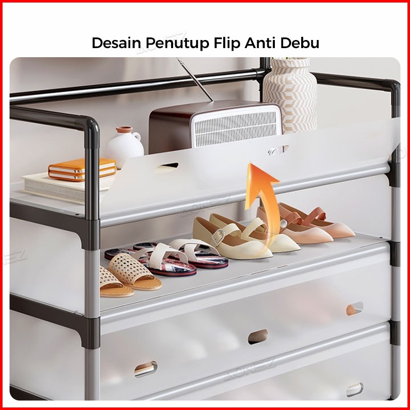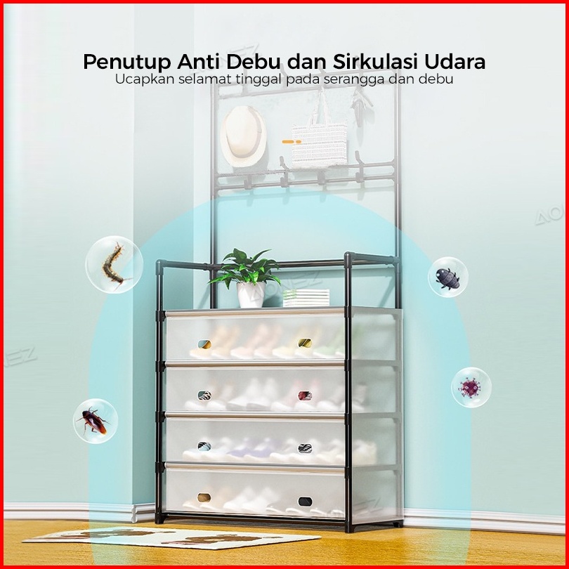 Codconfigear Rak Sepatu Tertutup Anti Debu Serbaguna Rak Penyimpanan Dengan Penutup Gantungan Tas Pakaian Baju Stand Han