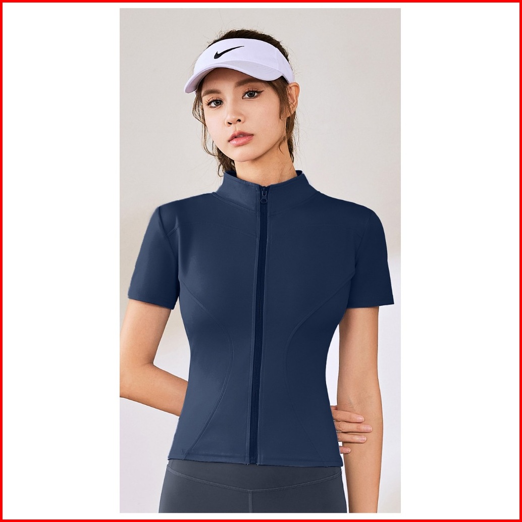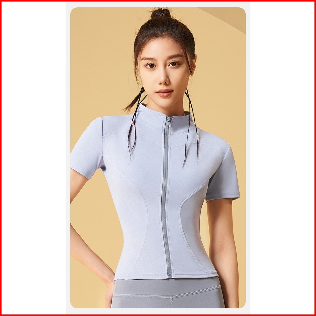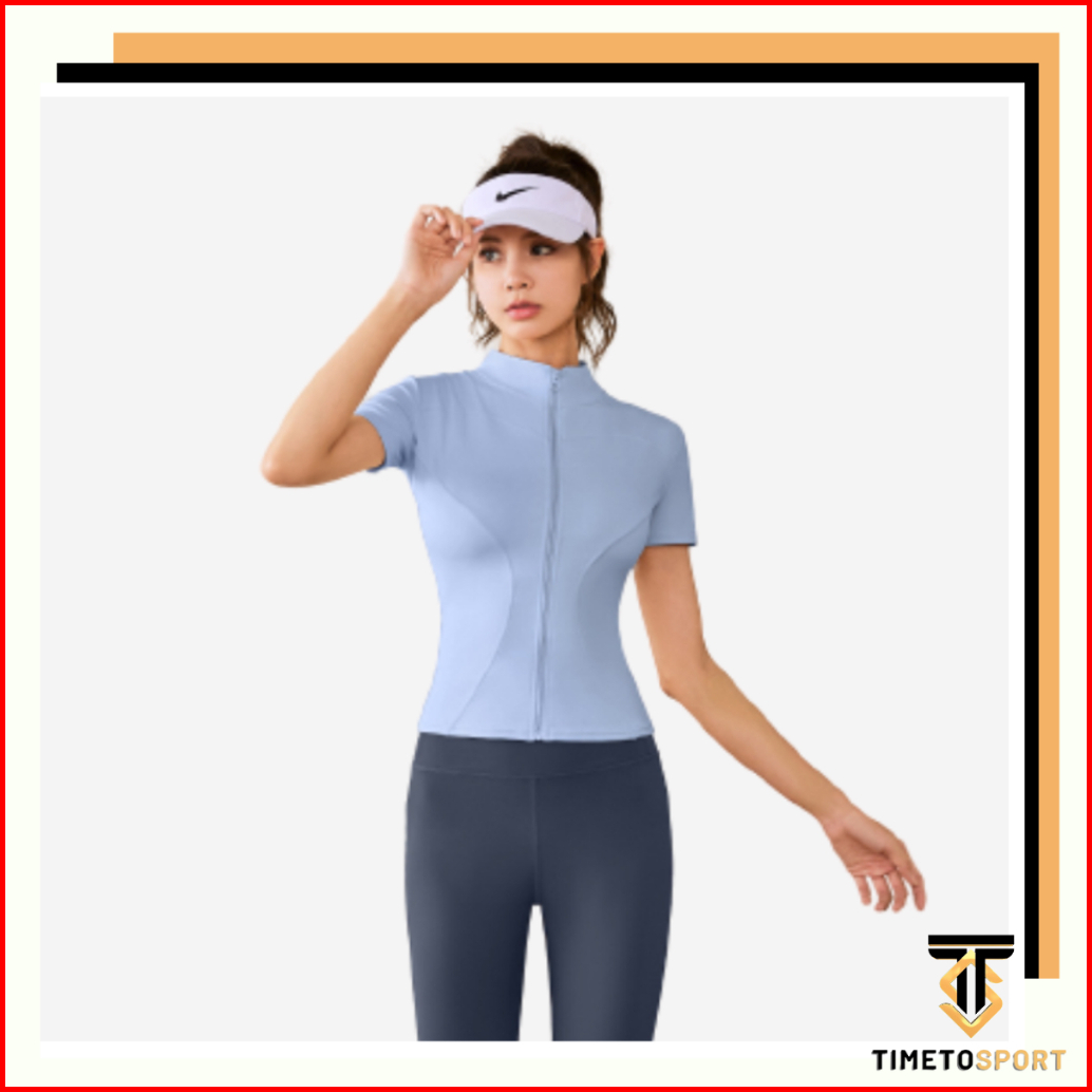 Timetosport Atasan Olahraga Wanita Dry Fit Zipper Lengan Pendek Kebugaran Yoga Aerobik 1170
