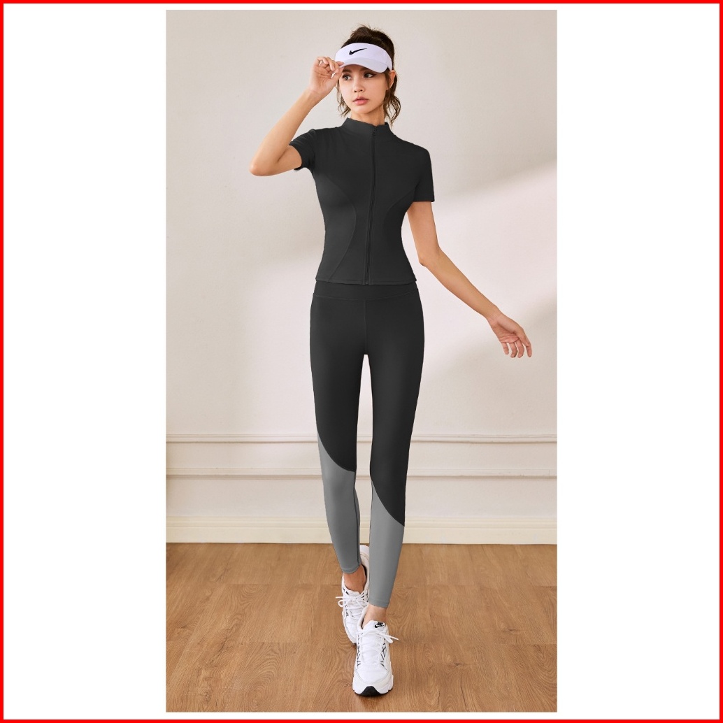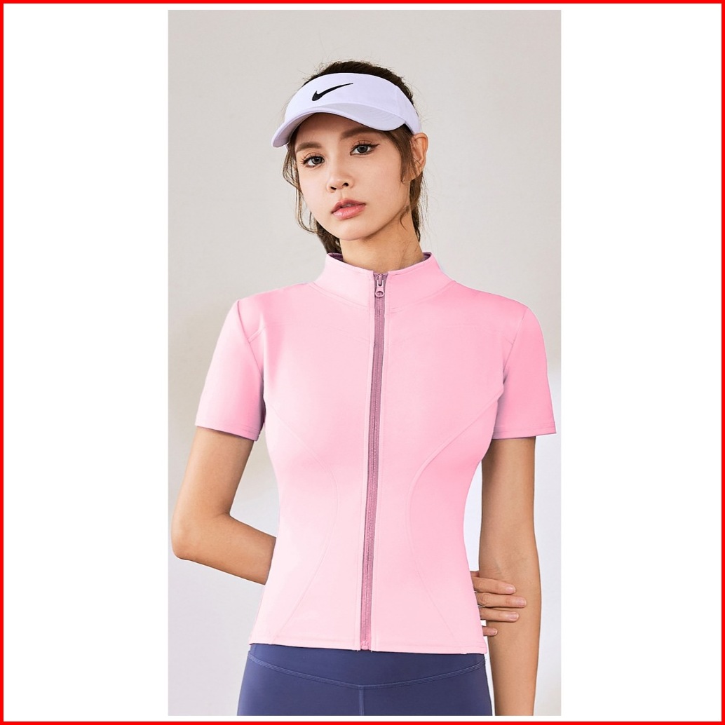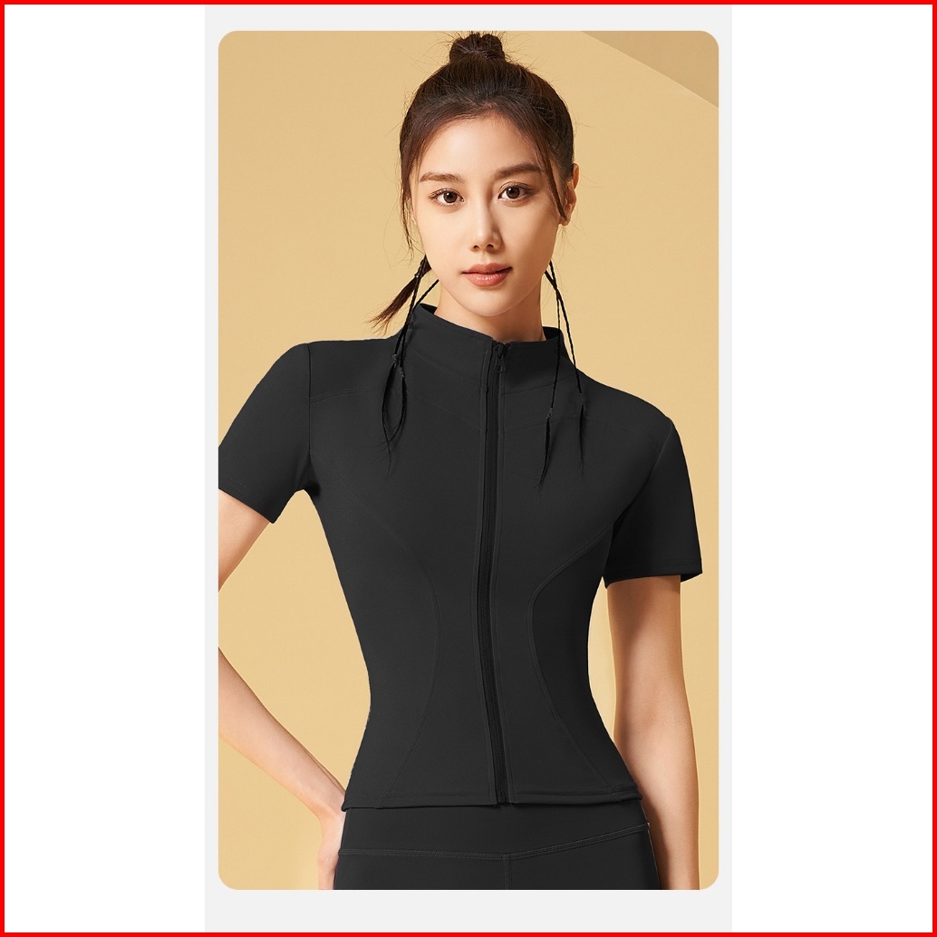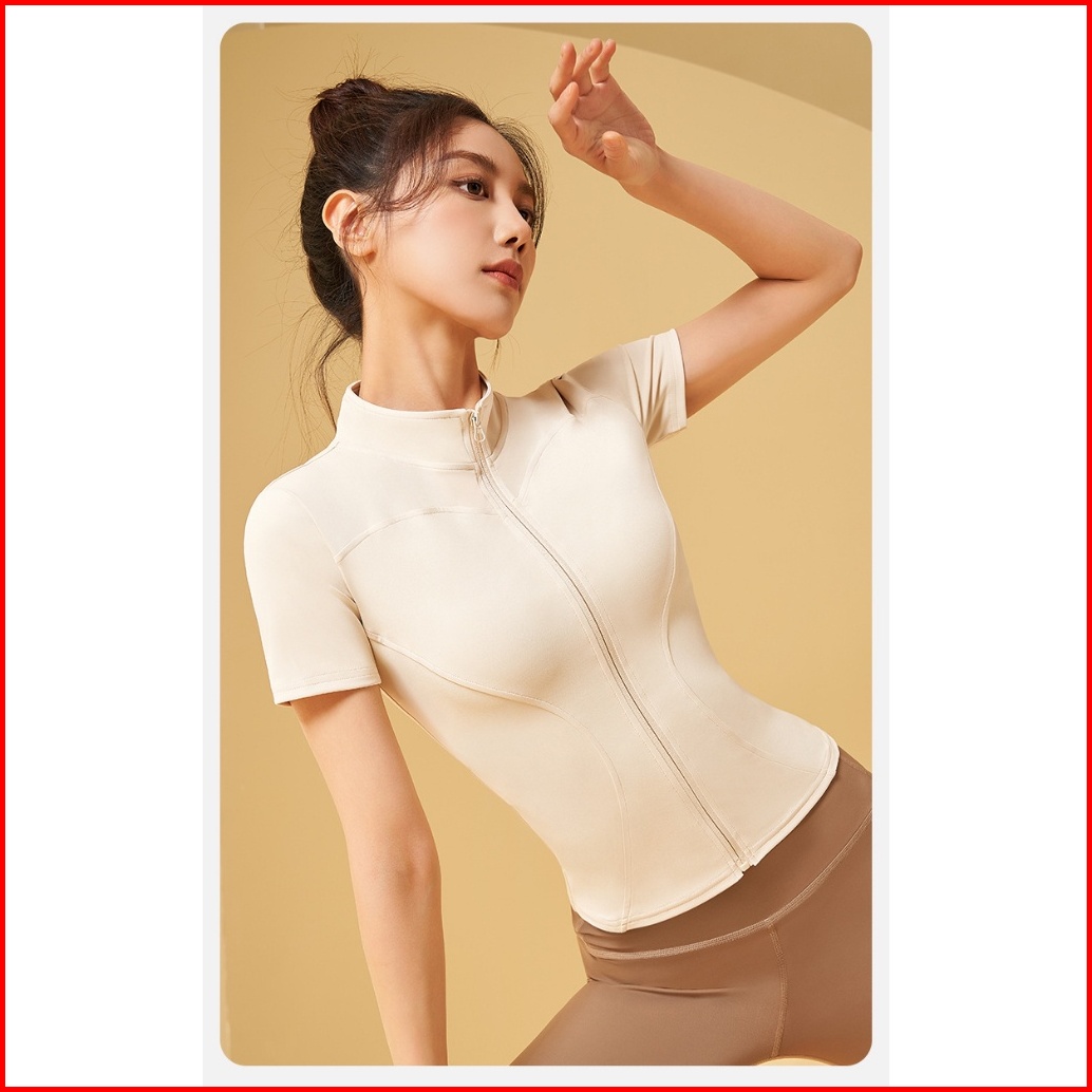 Timetosport Atasan Olahraga Wanita Dry Fit Zipper Lengan Pendek Kebugaran Yoga Aerobik 1170