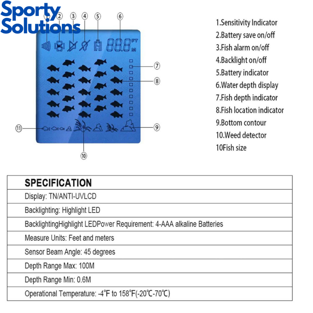Fish Finder Portable Sonar GPS Ikan Alat Pelacak Ikan Backlight - 100m