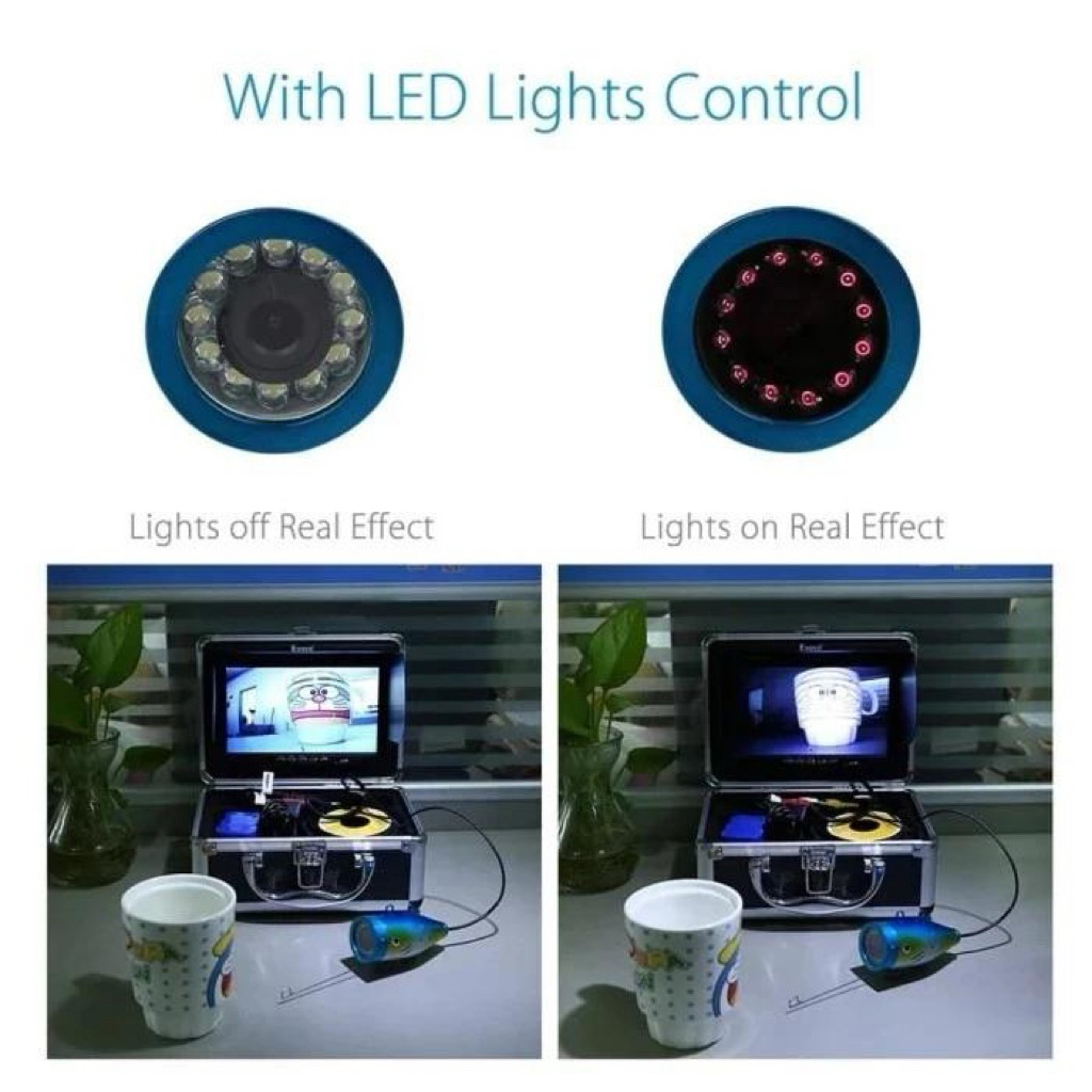 Fish Finder Underwater Fishing Camera Double Lamp 30LEDs 7Inch Underwater Camera Fish Finder 7" Display Eyoyo Locator Pe