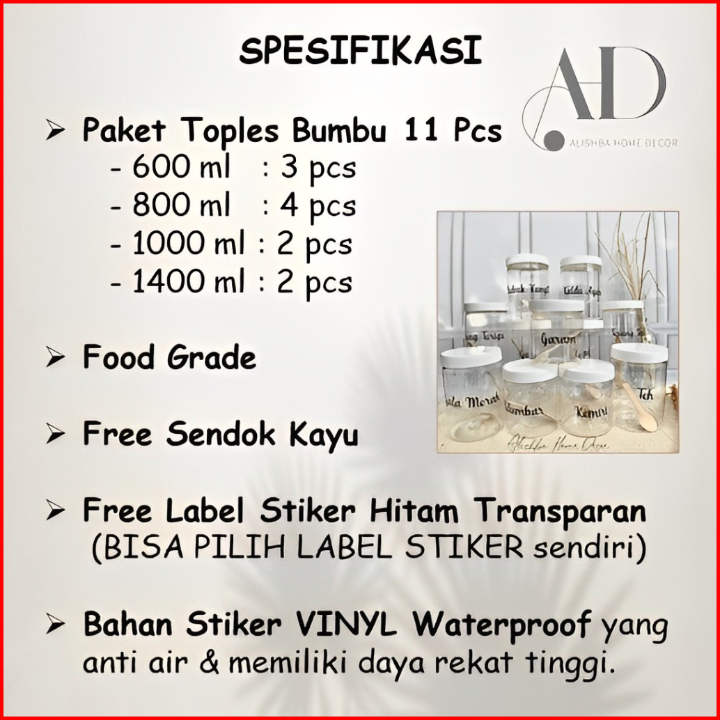 Toples Bumbu Set 11pcs Free Sticker Waterproff Indonesia Dan Sendok