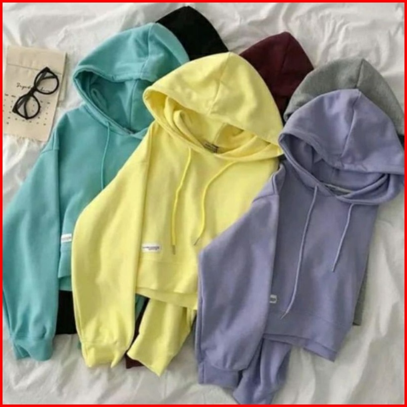 Abs Sweater Hoodie Crop Basic Korean Style Bahan Cotton Fleece S M L Xl Xxl