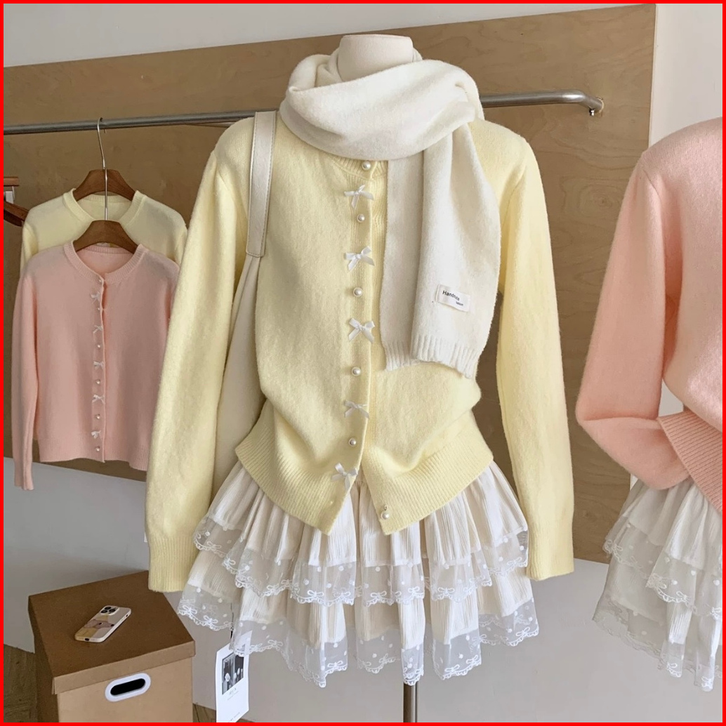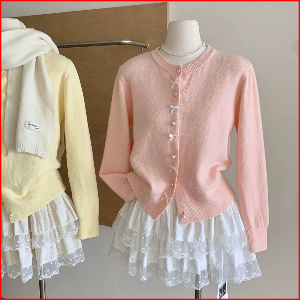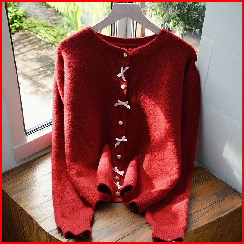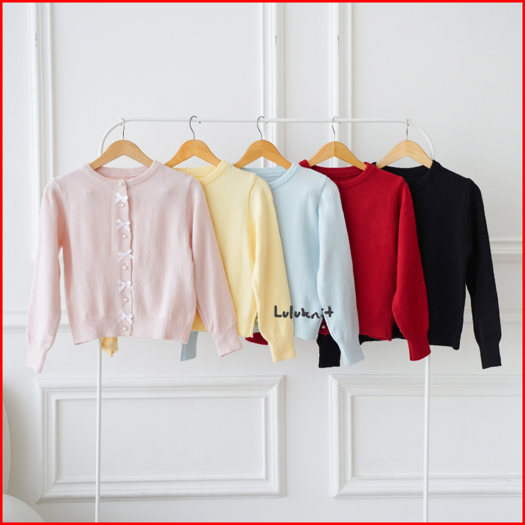Lulu - Cardigan Rajut Ribbon Knit Motif Pita Ribbon Style Coquette 5573m