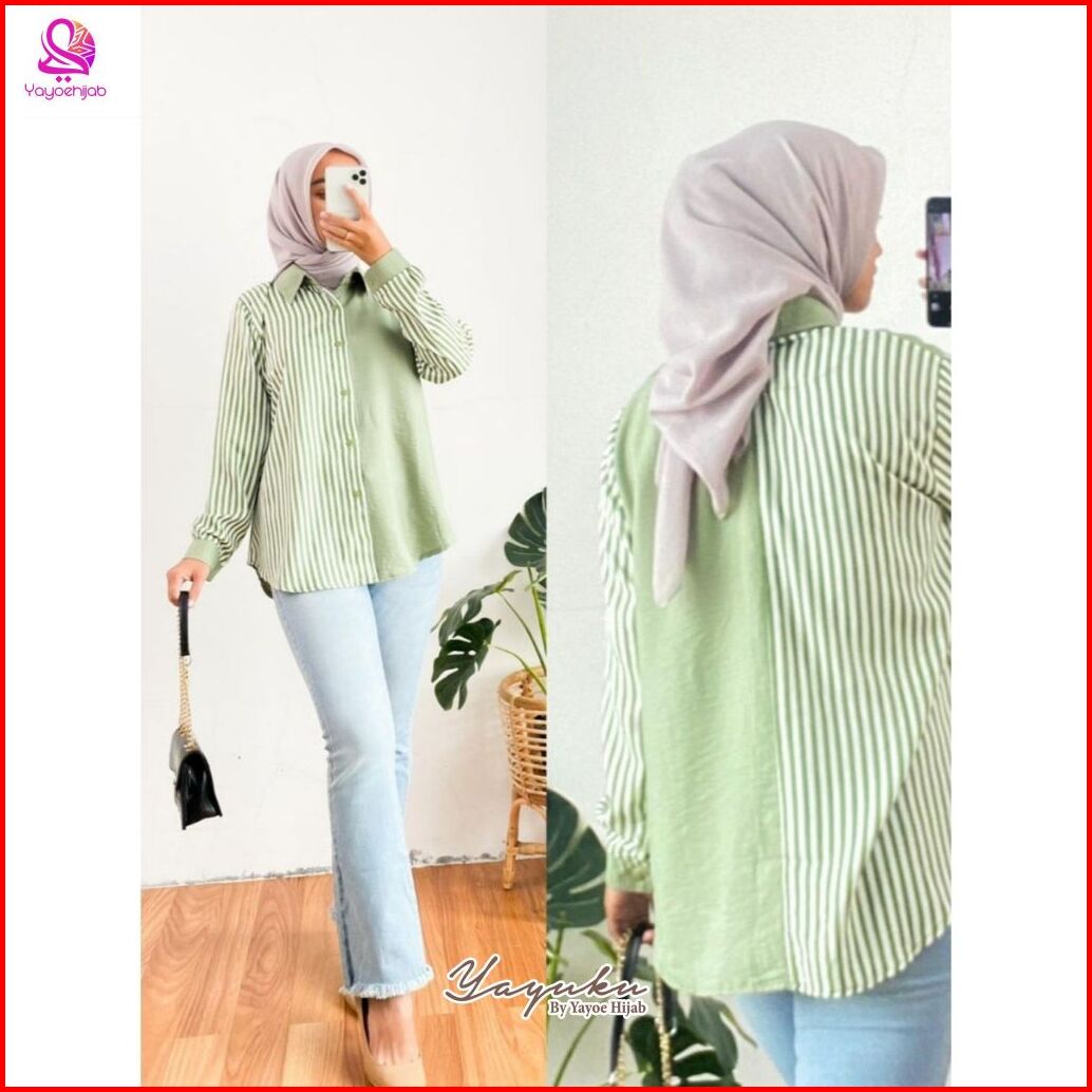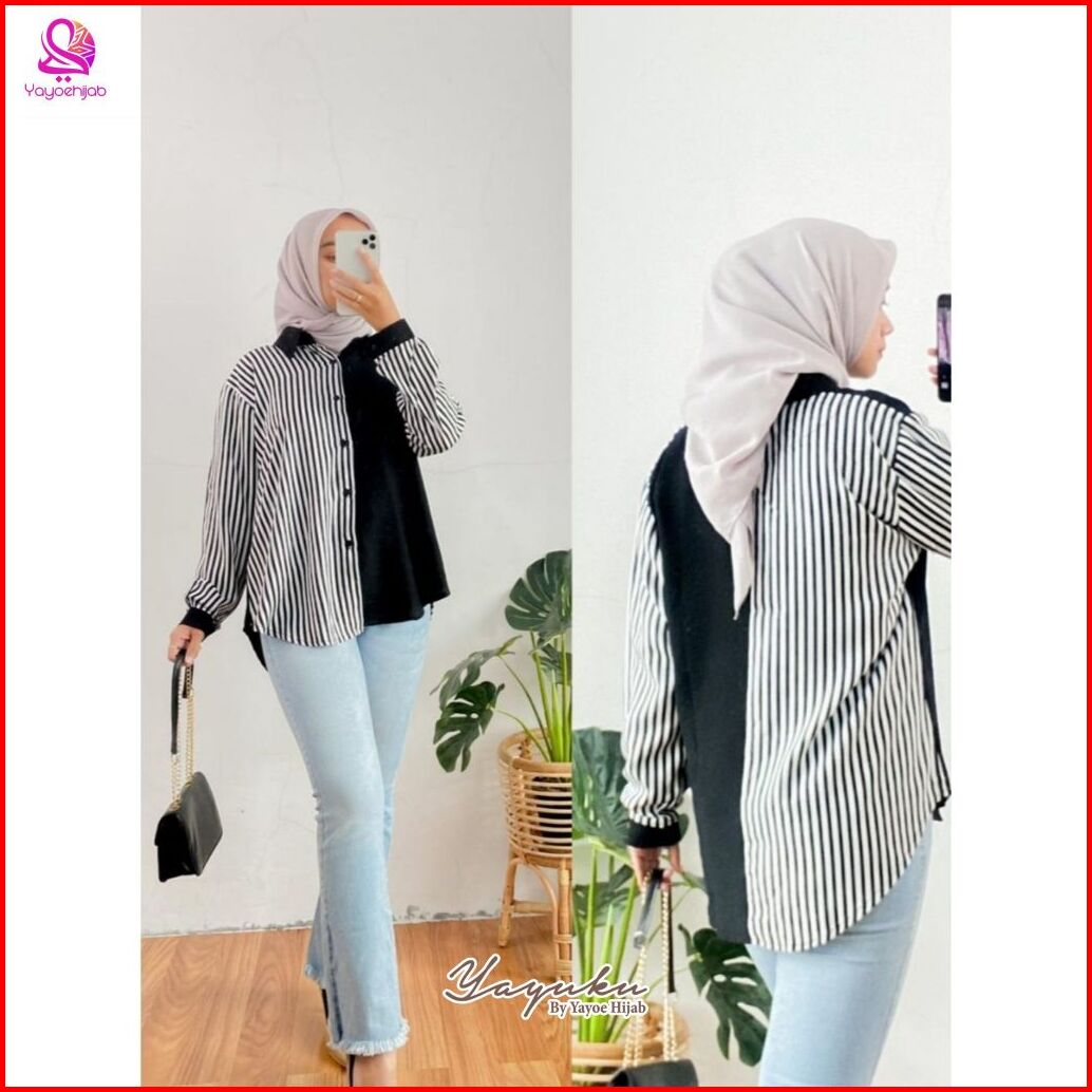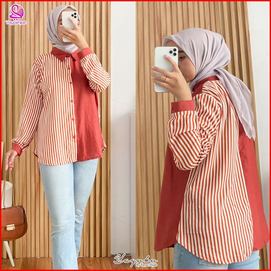 Nadine Top Atasan Kemeja Wanita Oversize Katun Rayon Viscose Mix Linen Cantik Kekinian Yayuku