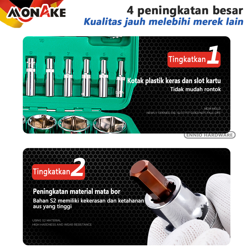 MONAKE Alat Jerman Kunci Sok Set 12/32/37/46/53/61/82/94 pcs Set Lengkap Kunci Mata Sok 1/2'' and 1/4'' inch Set Potong Kunci Pas Alat Set Cincini