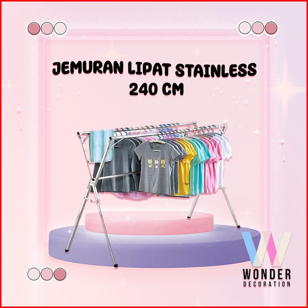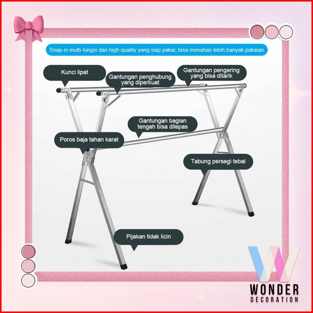 Jemuran Baju Lipat Stainless Steel Portable Jemuran Baju Anti Karat Jemuran Portable -wonderdekorasi