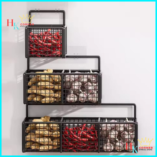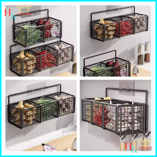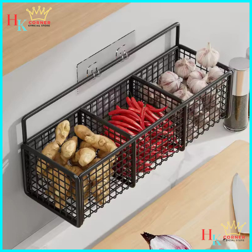 Hk Rak Keranjang Jaring Sekat Rak Bumbu Dapur Tempel Dinding Rak Keranjang Besi Serbaguna