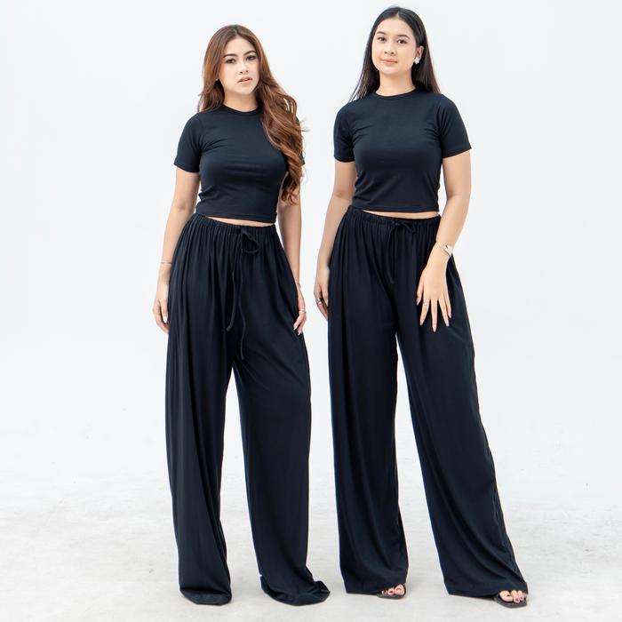 Celana Saja Georgios Women | Valie Loose Pants | Celana Panjang Wanita Kekinian Casual Cewek Kulot Hitam Dewasa Loose