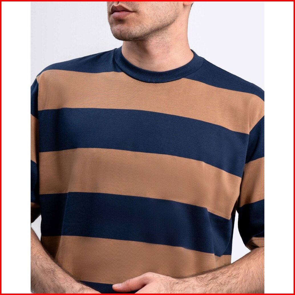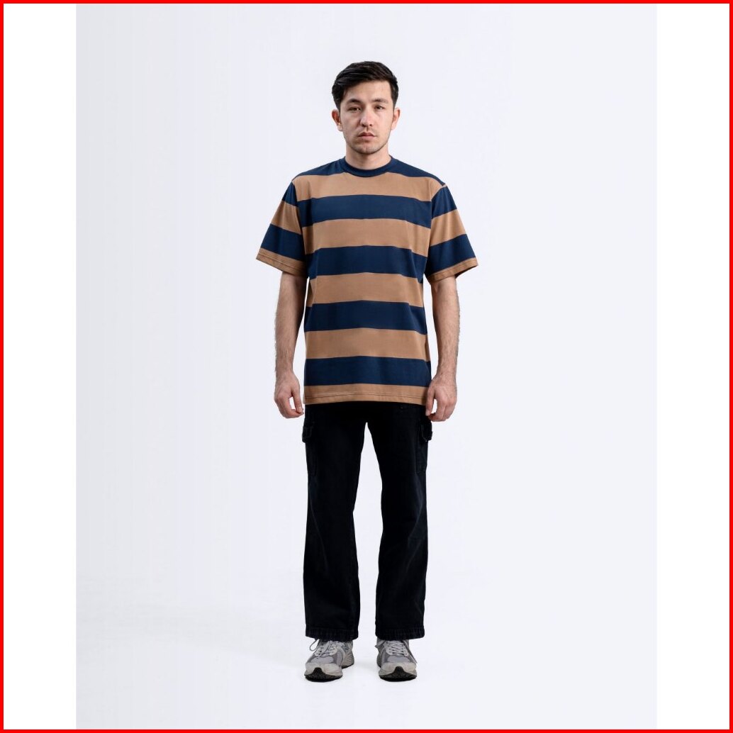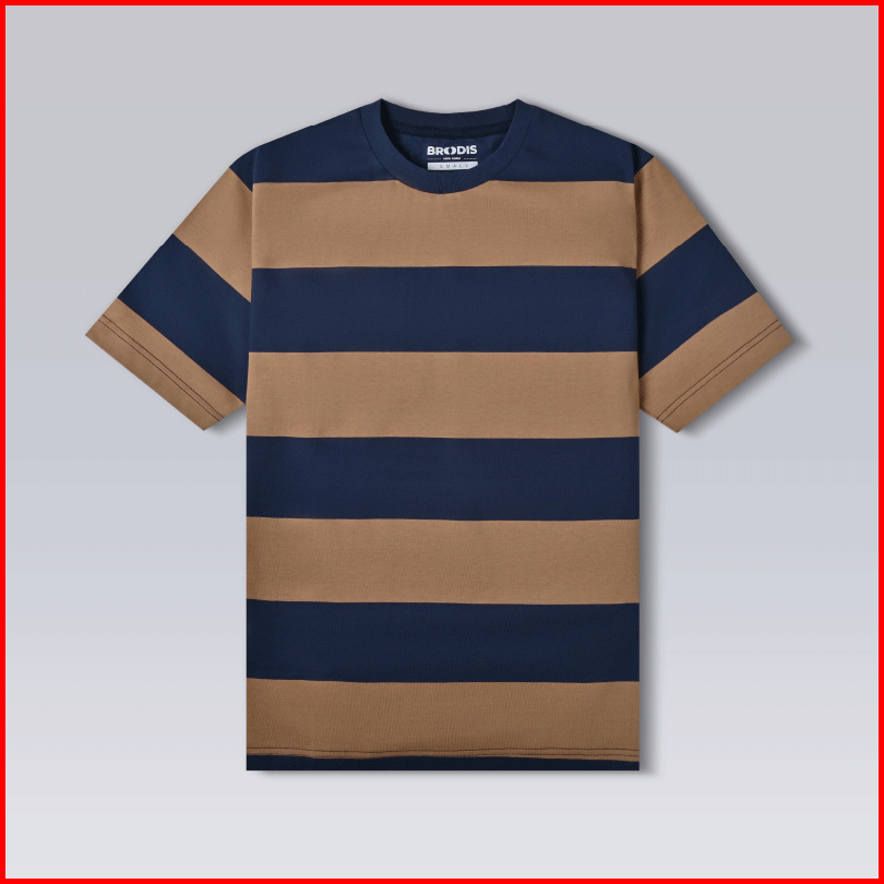 Broodis Kaos Oversize Pria Stripe Cokelat Mark Series Brown Navy Tshirt