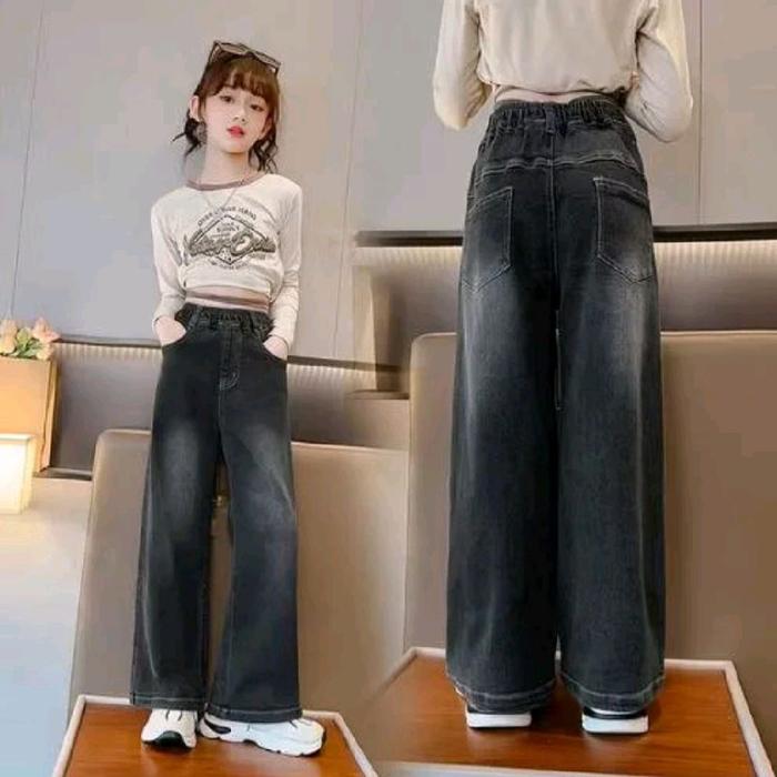 Celana Jeans Anak Model Skena Gombrong Usia 7 Sampai 14 Tahun Celana Jeans Kulot Anak Cewek Fashion Bahan Tebal Halus Le