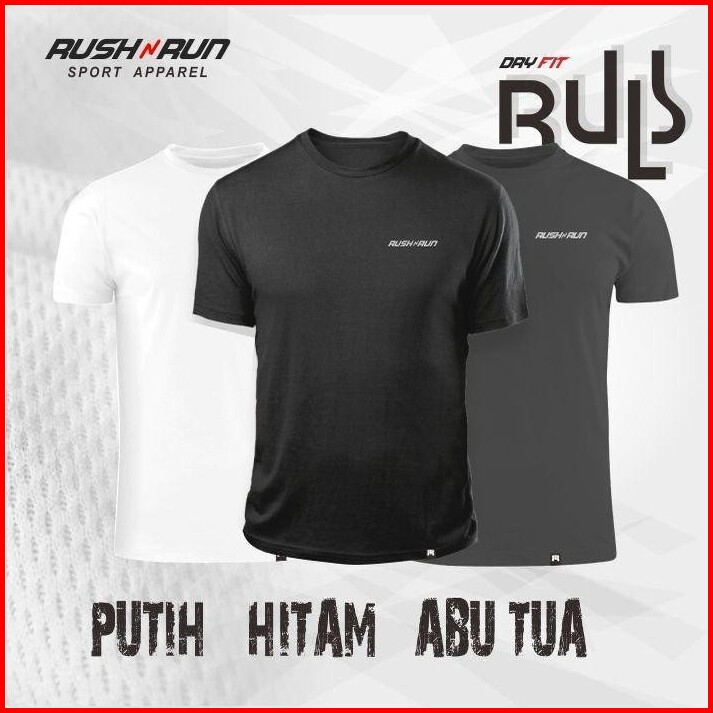 Rush N Run 3 Kaos Olahraga Pria Bahan Dry Fit Lengan Pendek Pakaian Sport Nyaman Menyerap Keringat